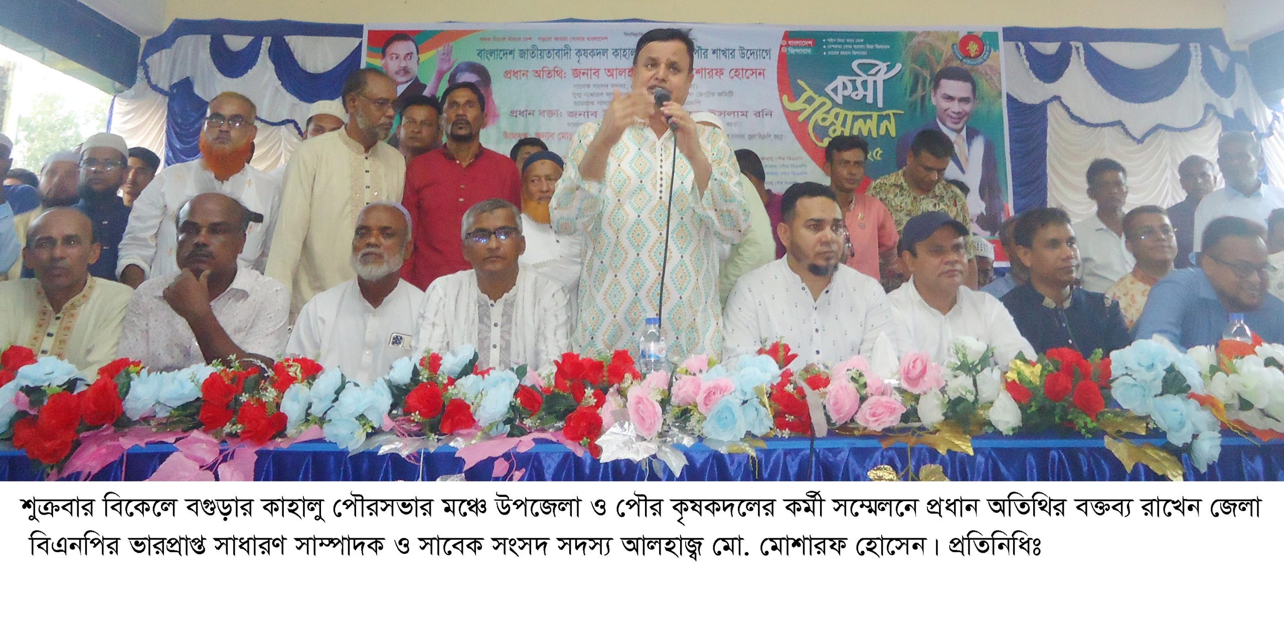 উক্ত কর্মী সম্মেলনে প্রধান অতিথি হিসেবে বক্তব্য রাখেন কেন্দ্রীয় কৃষকদলের সিনিয়র যুগ্ম সাধারণ সম্পাদক, বগুড়া জেলা বিএনপির ভারপ্রাপ্ত সাধারণ সাম্পাদক ও বগুড়া-৪, কাহালু-নন্দীগ্রাম এলাকার সাবেক সংসদ সদস্য আলহাজ্ব মো. মোশারফ হোসেন।