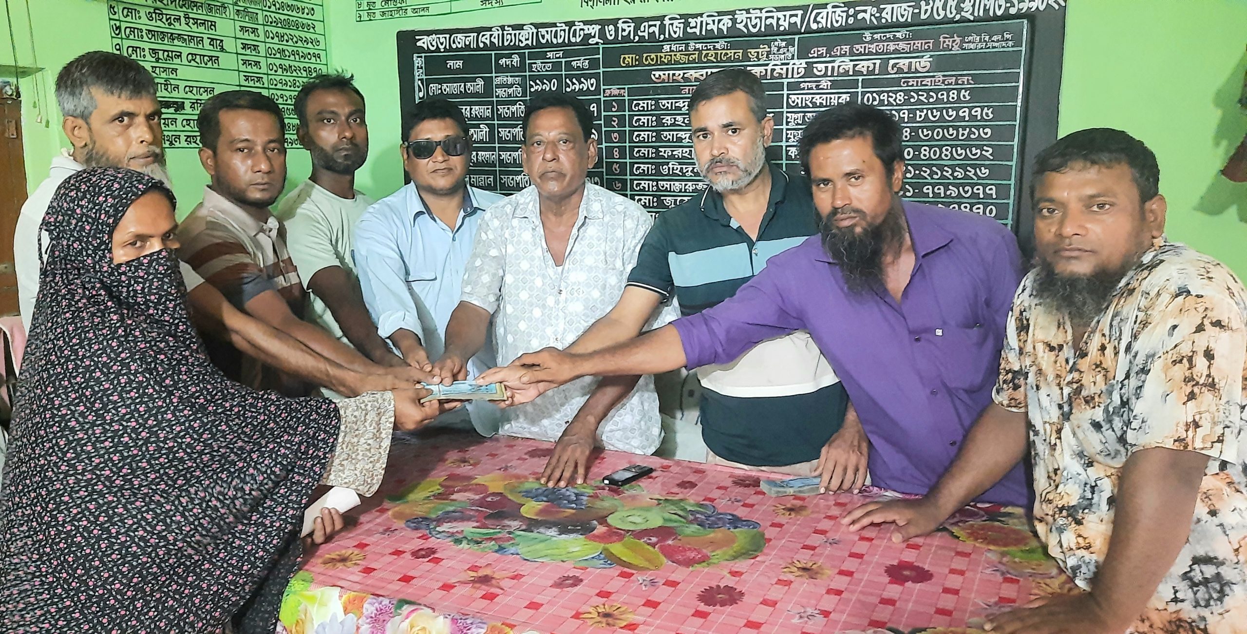 বগুড়া সংবাদ: বগুড়ার আদমদীঘি উপজেলার সান্তাহারে জেলা অটো টেম্পু ও সিএনজি শ্রমিক ইউনিয়নের উদ্যোগে মৃত শ্রমিক পরিবারের মাঝে মৃত্যু ফান্ডের নগদ অর্থ প্রদান অনুষ্ঠান অনুষ্ঠিত হয়েছে। মঙ্গলবার বেলা ১১ টায় জেলা অটো টেম্পু ও সিএনজি শ্রমিক ইউনিয়ন কার্যালয়ে মৃত সদস্য সিএনজি চালক জুয়েল হোসেনের স্ত্রী ও নাজমুলের স্ত্রীর হাতে মৃত্যু ফান্ডের নগদ অর্থ প্রদান করেন জেলা অটো টেম্পু ও সিএনজি শ্রমিক ইউনিয়নের আহবায়ক আব্দুল মান্নান।