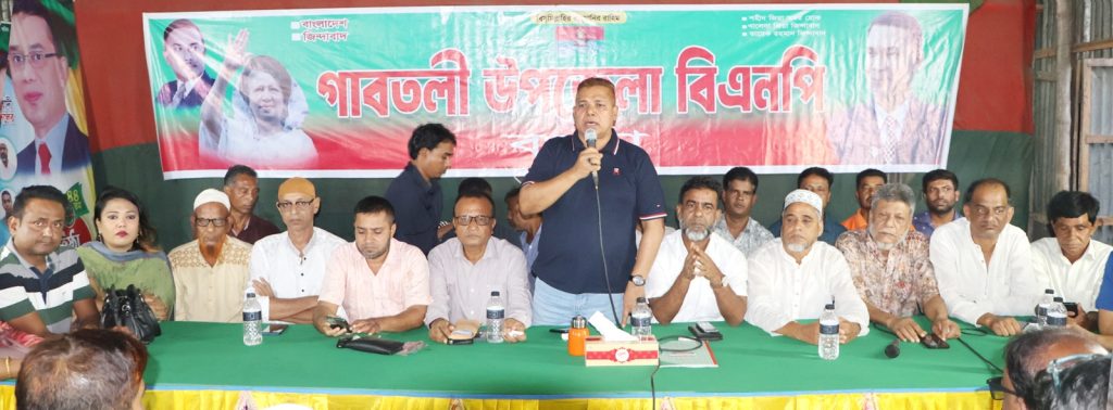 বগুড়া সংবাদ : ফ্যাসিস্ট হাসিনার বিরুদ্ধে ৫আগস্ট গণঅভ্যর্থনে বিজয় দিবস পালন উপলক্ষে গতকাল রোববার বগুড়া গাবতলী থানা বিএনপি’র কার্যালয়ে প্রস্তুতিমূলক সভা অনুষ্ঠিত হয়েছে। উপজেলা বিএনপির সহ-সভপতি আশরাফ হোসেনের সভাপতিত্বে প্রধান অতিথি হিসাবে বক্তব্য রাখেন জেলা বিএনপির সহ-সভাপতি ও উপজেলা বিএনপির সভাপতি মোশেদ মিল্টন। বিশেষ অতিথির বক্তব্য রাখেন উপজেলা বিএনপির সাধারণ সম্পাদক এনামুল হক নতুন। সাংগঠনিক সম্পাদক মমিনুল হাসান মমিনের সঞ্চালনায় আরও বক্তব্য রাখেন উপজেলা বিএনপির সহ-সভাপতি নজরুল ইসলাম টুকু, জুলফিকার হায়দার গামা, মকবুল হোসেন, যুগ্ম-সাধারণ সম্পাদক মুঞ্জুর মোশেদ, সুরাইয়া জেরিন রনি, সহ-সাধারণ সম্পাদক আব্দুল গফুর টুকু, সাংগঠনিক সম্পাদক সাহাদৎ হোসেন খান সাগর, দপ্তর সম্পাদক এমএ পান্না,উপজেলা যুবদলের আহবায়ক আরিফুর রহমান মজনু, যুগ্ম-আহব্বাহক রুহুল হাসান রুহিন, যুবদলের মিনাজুল ইসলাম, উপজেলা মহিলাদলের সাধারণ সম্পাদক সহমিনা আকতার রুমা, পৌর মহিলাদলের সভাপতি সুরভী, ইউনিয়ন বিএনপি নেতা মিজানুর রহমান হান্নান, জুবাইদুর রহমান গামা, আব্দুল হান্নান, শফিকুল ইসলাম ভূধন, জশিউর রহমান সোহেল, শফিকুল ইসলাম শফিক, তরিকুল ইসলাম, আবুল কালাম, সাজেদুর রহমান সুজন, আতিকুর রহমান পিন্টু, উপজেলা জাসাসের সভাপতি আরেফুর রহমান লিটন প্রমুখ।