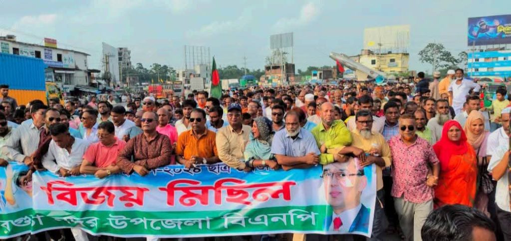 বগুড়া সংবাদ : জাতীয় নির্বাচনের রোডম্যাপ ঘোষনা না হওয়া পর্যন্ত রাজপথে আমাদের আন্দোলন চলবে। দেশের মানুষের ভোটের অধিকার ফিরিয়ে দেয়ার দেওয়া জন্য বিএনপি দীর্ঘ ১৬ বছর রাজপথে ছিল, আছে এবং ভোটের অধিকার আদায় করেই ঘরে ফিরবে। ৫ আগস্ট ঐতিহাসিক জুলাই মাসের গণঅভ্যুত্থানের বর্ষপূর্তি উপলক্ষে বগুড়া সদর উপজেলা বিএনপির উদ্যোগে বিজয় মিছিল শেষে বিক্ষোভ সমাবেশে প্রধান অতিথির বক্তব্যে এসব কথা বলেন বগুড়া জেলা বিএনপির সভাপতি রেজাউল করিম বাদশা।