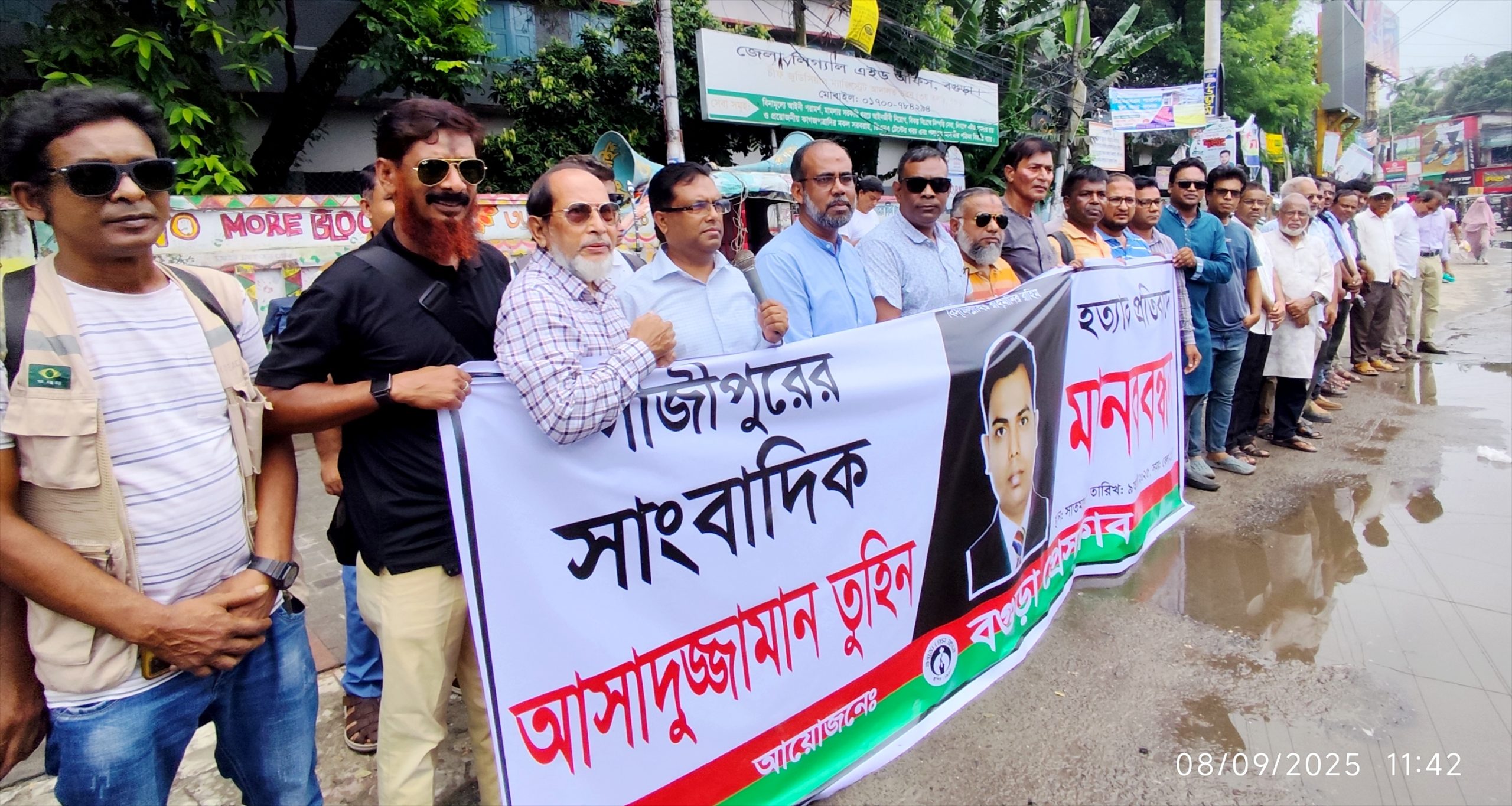 বগুড়া প্রেসক্লাবের মানববন্ধন সাংবাদিক তুহিন হত্যাকাণ্ডে জড়িত সন্ত্রাসীদের দ্রুত বিচার ট্রাইব্যুনালে বিচার করতে হবে