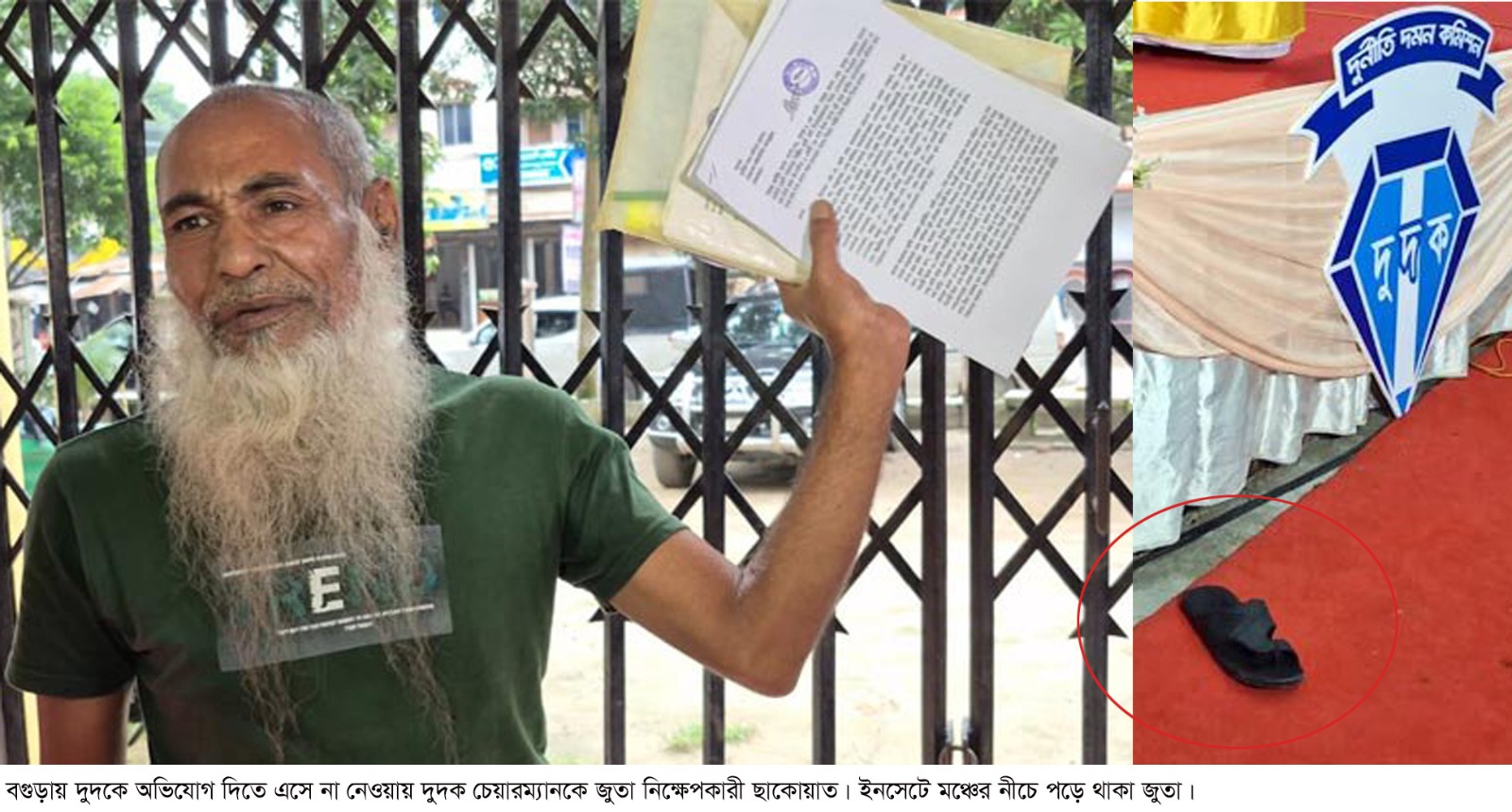 জানা যায়, ছাকোয়াত হোসেন মণ্ডল নামের ব্যক্তি পেশায় মৎস্যচাষি। তিনি দীর্ঘদিন বিভিন্ন জায়গায় প্রতারিত হয়ে কোন প্রতিকার না পেয়ে হতাশ হয়ে পড়েন। প্রশাসন থেকে শুরু করে স্বরাষ্ট্র মন্ত্রণালয় ও সেনাপ্রধানের দপ্তরে অভিযোগ করেও কোনো সুরাহা পাননি। শেষ চেষ্টা হিসেবে তিনি বগুড়ায় দুদকের গণশুনানিতে অভিযোগ জমা দিতে যান। কিন্তু সেখানেও তার অভিযোগ গ্রহণ করা হয়নি। পরে গণশুনানি চলাকালে ছাকোয়াত হোসেন হঠাৎ ক্ষিপ্ত হয়ে দুদকের চেয়ারম্যান ড. মোহাম্মদ আবদুল মোমেনের দিকে নিজের পায়ের জুতা নিক্ষেপ করেন। ঘটনার পরপর কর্মকর্তারা তাকে সরিয়ে দেন।