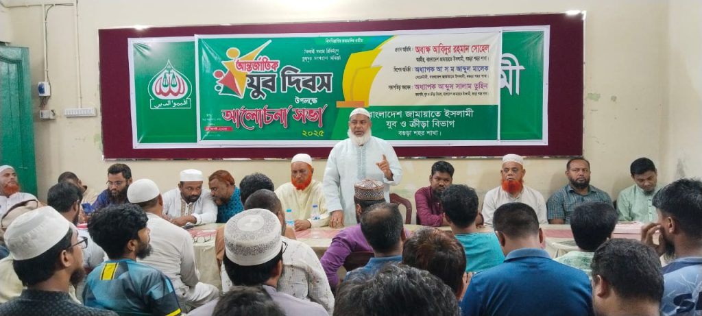 বগুড়া সংবাদ: আন্তর্জাতিক যুব দিবস উপলক্ষে আজ (মঙ্গলবার) সকালে বাংলাদেশ জামায়াতে ইসলামী বগুড়া শহর শাখার যুব ও ক্রীড়া বিভাগের উদ্যোগে আলোচনা সভা অনুষ্ঠিত হয়। শহর জামায়াত কার্যালয়ে আয়োজিত আলোচনা সভায় সভাপতিত্ব করেন শহর জামায়াতের যুব ও ক্রীড়া বিভাগের সভাপতি অধ্যাপক আব্দুস ছালাম তুহিন। যুব ও ক্রীড়া বিভাগের সেক্রেটারী আব্দুল হাদী মোঃ শফিকের সঞ্চালনায় অনুষ্ঠানে প্রধান অতিথি ছিলেন বগুড়া শহর জামায়াতের আমির ও বগুড়া-৬ (সদর) আসনে জামায়াত মনোনীত সংসদ সদস্য পদপ্রার্থী জননেতা অধ্যক্ষ আবিদুর রহমান সোহেল। বিশেষ অতিথি ছিলেন শহর জামায়াতের সেক্রেটারি অধ্যাপক আ.স.ম আব্দুল মালেক। আরও বক্তব্য রাখেন যুব নেতা এনামুল হক রানা, নামিরুল হক জার্জিস, আব্দুল ওয়াদুদ, দেলোয়ার হোসেন, আবু সুফিয়ান পলাশ, অধ্যাপক হারুনুর রশিদ, মোস্তফা মোঘল, আবু হুরায়রা, রফিকুল ইসলাম, মোকাম্মেল হক প্রমূখ।