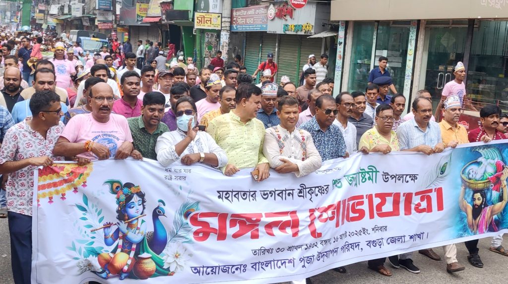 বগুড়া সংবাদ : বগুড়ায় নানা আয়োজনের মধ্য দিয়ে শ্রীকৃষ্ণের শুভ জন্মাষ্টমী পালিত হয়েছে। শনিবার (১৬ আগস্ট) সকালে বগুড়া পূজা উদযাপন ফ্রন্ট ও পূজা উদযাপন পরিষদের আয়োজনে পৃথক কর্মসূচি পালন করা হয়।