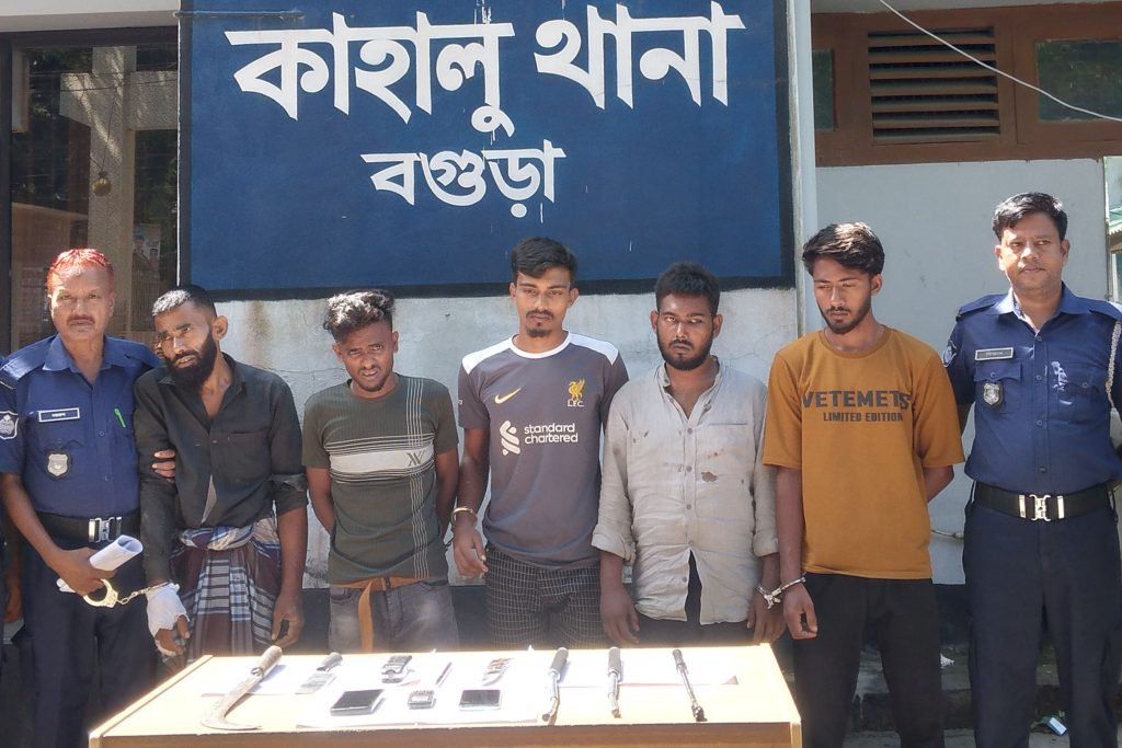 কাহালুতে ডাকাতির প্রস্তুতিকালে দেশীয় অস্ত্র সহ ৫ ডাকাত আটক