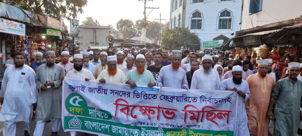 বগুড়া সংবাদ : ২৬ সেপ্টেম্বর বগুড়ার গাবতলীতে কেন্দ্রীয় কর্মসূচির অংশ হিসেবে উপজেলা জামায়াতে ইসলামীর বিক্ষোভ মিছিল ও সমাবেশ জামায়াতের আমীর মাওলানা ইউনুস আলীর সভাপতিত্বে অনুষ্ঠিত হয়েছে। এতে প্রধান অতিথি হিসেবে উপস্থিত ছিলেন জেলা জামায়াতের নায়েবে আমির মাওলানা মো: আব্দুল হাকিম ।বিশেষ অতিথি হিসেবে উপস্থিত ছিলেন সাবেক উপজেলা ভাইস চেয়ারম্যান ও জেলা জামায়াতের কর্মপরিষদ সদস্য