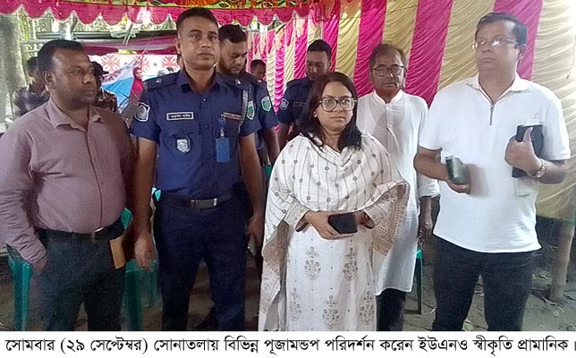 বগুড়া সংবাদ : বগুড়ার সোনাতলা সদর ইউনিয়ন ও মধুপুর ইউনিয়নে কয়েকটি শারদীয় দুর্গাপূজা মন্ডপ পরিদর্শন করেন ইউএনও স্বীকৃতি প্রামানিক। তার সাথে ছিলেন থানার অফিসার ইনচার্জ রওশন কবীর সোনাতলা সদর ইউনিয়ন পরিষদ চেয়ারম্যান জাকির হোসেন বেলাল আকন্দ, মধুপুর ইউনিয়ন পরিষদ চেয়ারম্যান মোঃ আব্দুল আলিম,উপজেলা মহিলা বিষয়ক কর্মকর্তা মোঃ মাঈনুল হক,উপজেলা যুব উন্নয়ন কর্মকর্তা শাহ্ জামাল ও কিছু সংখ্যক পুলিশ সদস্য। এছাড়া ছিল সোনাতলায় কর্মরত সাংবাদিকদের একটি টিম। টিমে ছিলেন সোনাতলা প্রেসক্লাবের প্রতিষ্ঠাতা সভাপতি সিনিয়র সাংবাদিক মোশাররফ হোসেন মজনু,বর্তমান সভাপতি শহিদুল ইসলাম শাহীন,সাংবাদিক ফয়সাল আহম্মেদ,শামীম হোসেন সুজন,আমিরুল ইসলাম ও তৌহিদ ও হারুন-অর-রশিদ। সোমবার বিকেল থেকে সন্ধ্যা পর্যন্ত কাবিলপুর নাপিত বাড়ি,চকনন্দন,বিশ্বনাথপুর ও মধুপুরে দুটি দুর্গাপূজা মন্ডপ পরিদর্শন করা হয়।