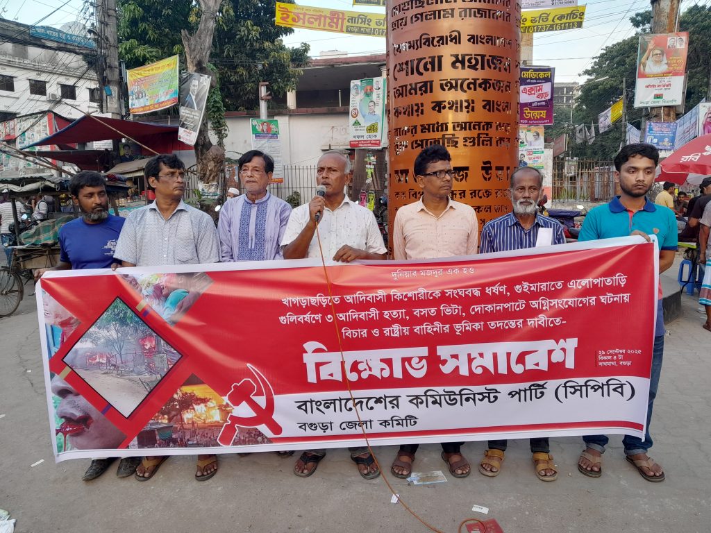 পাহাড়ি কিশোরী ধর্ষণ ও তিনজন আদিবাসী হত্যার প্রতিবাদে সিপিবির বগুড়ায় বিক্ষোভ সমাবেশ অনুষ্ঠিত