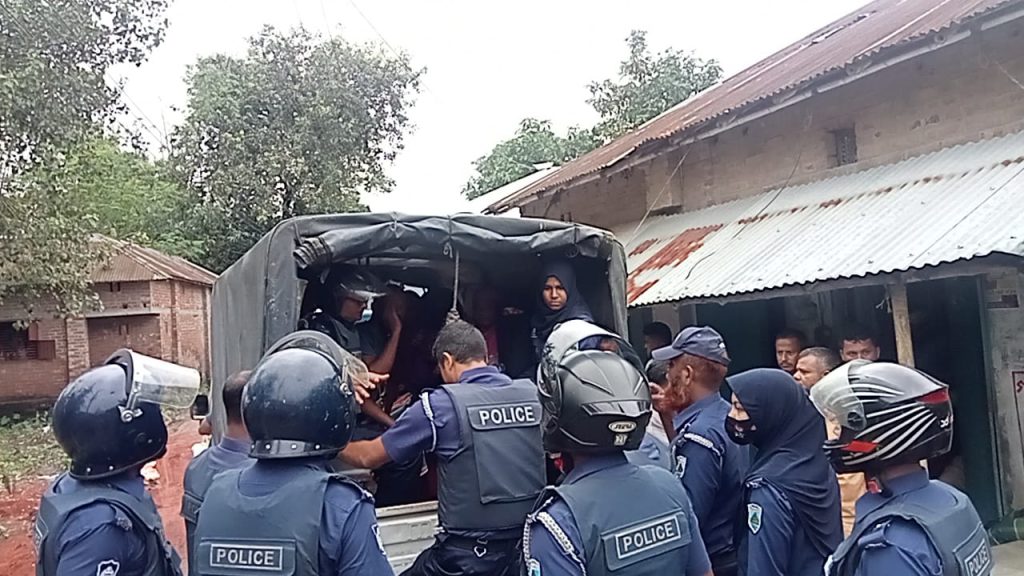 নারীসহ ২১ জনকে গ্রেপ্তার করেছে পুলিশ। সরকারি কাজে বাধা প্রদান করায় ২০ জনের নাম উল্লেখ করে ও ২০০ জন অজ্ঞাতনামা ব্যক্তির বিরুদ্ধে মামলা করেছে পুলিশ।