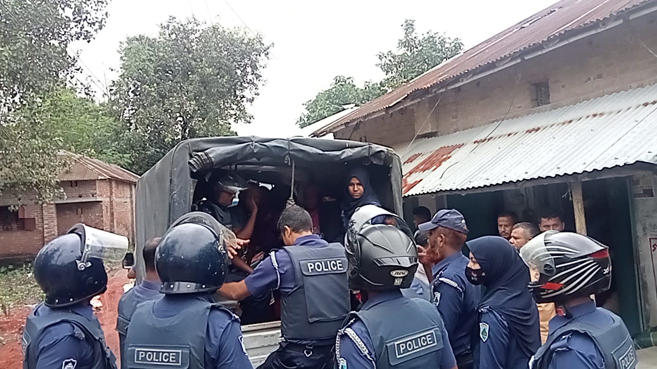স্থানীয় ও পুলিশ সূত্রে জানাযায় গোপন সংবাদের ভিত্তিতে এসআই মামুনসহ পুলিশের ৫ সদস্য একাধিক মামলার আসামি রিজ্জাকুল ইসলাম রাজুকে গ্রেপ্তার করে হাতে হাতকড়া পরিয়ে থানায় নিয়ে যাওয়ার সময় গ্রামের বিক্ষুব্ধ নারী- পুরুষেরা পুলিশের উপর হামলা চালায়। তারা পুলিশের চোখেমুখে কাদা ছুড়ে এবং ধস্তাধস্তি করে রাজুকে ছিনিয়ে নিয়ে যায়। পুলিশ আসামিকে গ্রেপ্তার ও হাতকড়া উদ্ধার করতে সাঁড়াশি অভিযান চালায়। এর ফলে গ্রামটি নারী ও পুরুষশূন্য হয়ে পড়েছে।