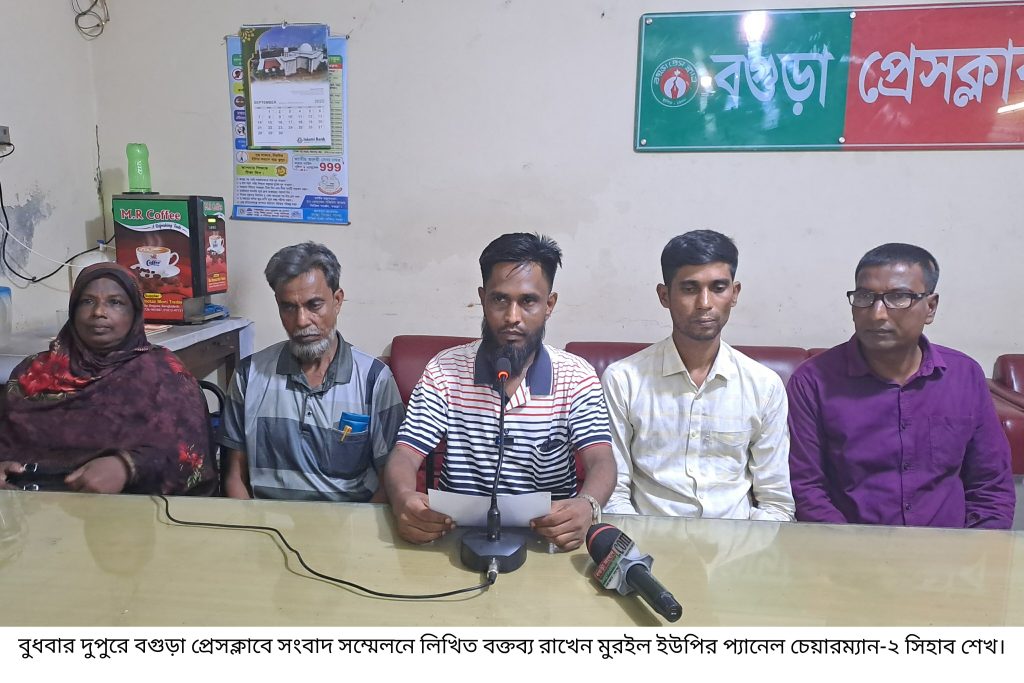 বগুড়া প্রেসক্লাবে ইউপি প্যানেল চেয়ারম্যানের সংবাদ সম্মেলন মুরইলে জনসেবা ৬ মাস যাবত ব্যাহত, মানা হয়নি আদালতের নির্দেশনা