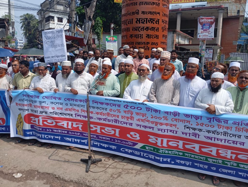 সরকার ঘোষিত ৫০০ টাকা বাড়ি ভাড়া বৃদ্ধির প্রতিবাদে আদর্শ শিক্ষক ফেডারেশন বগুড়া প্রতিবাদ সভা অনুষ্ঠিত
