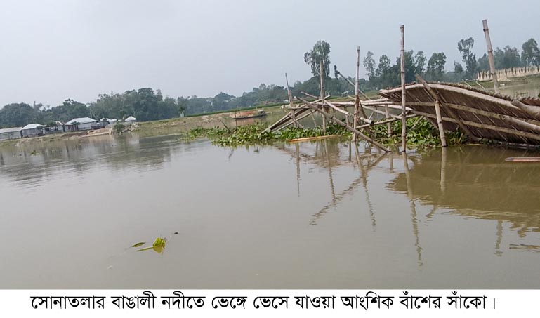 বগুড়া সংবাদ (মোশাররফ হোসেন মজনু,সোনাতলা ,বগুড়া) : সোনাতলা উপজেলার জোড়গাছা ইউনিয়নের অন্তর্গত হলিদাবগা খেয়াঘাটে বাঙ্গালী নদীর ওপর স্বেচ্ছাশ্রমে নির্মিত বাঁশের সাঁকোটি বন্যার পানি ও কচুরিপানার চাপে ভেঙ্গে ভেসে গেছে। এতে নদী পারাপারে বেড়েছে জনদুর্ভোগ। এখানে একটি পাকাব্রিজ নির্মাণে সংশ্লিষ্ট উর্দ্ধতন কর্তৃপক্ষের প্রতি জোরদাবী তুলেছেন এলাকাবাসী। এ ঘাট দিয়ে যুগ যুগ ধরে নদীর দু’পাড়ের প্রায় ৩০ গ্রামের কৃষক,শিক্ষার্থী ও ব্যবসায়ী-সহ নানা শ্রেণি পেশার মানুষ প্রতিনিয়ত ডিঙ্গি নৌকা যোগে জীবনের ঝুঁকি নিয়ে নদী পারাপার হয়ে আসছে। নদী পারাপার হওয়া একমাত্র ভরসা ডিঙ্গিনৌকা। কোনো এমপি, মন্ত্রী কিংবা সংশ্লিষ্ট অধিদপ্তরের কোনো কর্মকর্তা এখানে ব্রিজ নির্মাণের ব্যবস্থা নেননি। অথচ এ খেয়াঘাট অতীব গুরুত্বপূর্ণ স্থান। ঘাটের পশ্চিম তীরেই রয়েছে বাঙালী হাট। এছাড়া আরো দুটি হাট ও একটি কলেজ-সহ কয়েকটি শিক্ষা প্রতিষ্ঠান, ভেলুরপাড়া রেলস্টেশন, জোড়গাছা ইউনিয়ন পরিষদ, ভূমি অফিস, দুটি ব্যাংক, এনজিও অফিস ও বেশকিছু ব্যবসা প্রতিষ্ঠান রয়েছে। ঘাটের পূর্ব পাশে রয়েছে পাকুল্লা ইউনিয়ন পরিষদ, পাকুল্লা হাট,হরিখালী হাট,কয়েকটি শিক্ষা প্রতিষ্ঠান ও অন্যান্য প্রতিষ্ঠান। নদীর দুই পাড়ে রয়েছে কৃষকদের বহু আবাদী জমি। যারা ট্রেনযাত্রী,তাদের একবার খেয়া নৌকা মিছ হলে তো ট্রেন মিছ। আর শিক্ষার্থীদের হয় ক্লাস মিছ। অর্থাৎ নদী পারাপার হওয়া সবার জন্য দুর্ভোগ। এ দুর্ভোগ লাঘবে হলিদাবগা গ্রামের জোতদার পরিবারের সন্তান বাউল মুকুল গত প্রায় ১০ মাস আগে নদীর দুইপাড়ের কিছু যুবকদের নিয়ে বাঁশের সাঁকো নির্মাণ ব্যাপারে একটি বৈঠক করেন। এ মহৎ উদ্যোগ কাজে সারা দিলেন যুব সমাজ। যেই কথা সেই কাজ। তারা শুরু করলেন বাঁশ,দড়ি,লোহা ও অর্থ সংগ্রহের কাজ। এ সব সংগ্রহ করে এলাকার যুব সমাজ খেয়াঘাটে নদীর ওপর দিয়ে নির্মাণ করেন ৩০০ মিটার দৈর্ঘ্যে সুন্দর একটি বাঁশের সাকো। সাঁকো নির্মাণ হওয়ায় স্বস্তির নিঃশ্বাস ফেলেন এলাকাবাসী। সাঁকোটি নির্মাণ করতে সময় লেগেছে দুই মাস। টাকা ব্যয় হয়েছে প্রায় দেড়লাখ। রাতে সাঁকো পারাপারের সুবিধার্থে পুরো সাঁকোর ওপর ব্যবস্থা করা হয় বিদ্যুতের আলো। দুই পাড়ের জনসাধারণ রাত-দিন যেকোনো সময় সাঁকোর ওপর দিয়ে সহজে যাতায়াত করতে পেরেছিল। কিন্তু দুর্ভাগ্য। গত বেশ কিছুদিন আগে বন্যার পানির ¯্রােত আর উজান থেকে ভেসে আসা অসংখ্য কচুরিপানার চাপে সাঁকোটি উল্টে পড়ে ভেসে যায়। ফলে আবারো দেখা দেয় নদী পারাপারে দুর্ভোগ। শুরু হলো আবার সেই আগের মতো ডিঙ্গি নৌকা যোগে নদী পারাপার। বছরের বারো মাস নদীতে পানি থাকে। বন্যার সময় নদী পারাপার হওয়া সবার জন্য ঝুঁকি হয়ে দাঁড়া