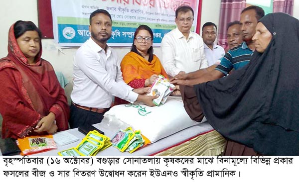 সোনাতলায় ক্ষুদ্র ও প্রান্তিক কৃষকদের মাঝে বীজ সার বিতরণ