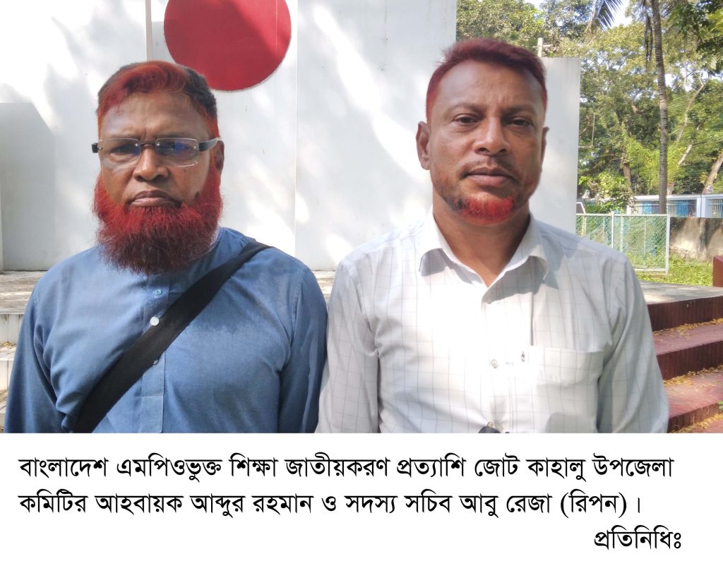 আব্দুর রহমান আহবায়ক আবু রেজা সদস্য সচিব বাংলাদেশ এমপিওভুক্ত শিক্ষা জাতীয়করণ প্রত্যাশি জোট কাহালু উপজেলা আহবায়ক কমিটি গঠন