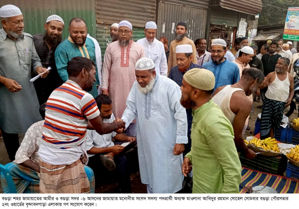 বগুড়ার ফুলবাড়ী ও বৃন্দাবনপাড়ায় সোহেলের দাড়িপাল্লায় ভোট চেয়ে গণসংযোগ