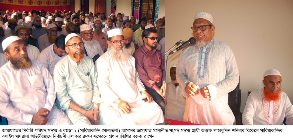বগুড়া সংবাদ : জামায়াতের নির্বাহী পরিষদ সদস্য ও বগুড়া -১ আসনের জামায়াত মনোনীত সংসদ সদস্য পদপ্রার্থী অধ্যক্ষ শাহাবুদ্দিন বলেছেন, নভেম্বরে গণভোট ও ফেব্রুযারীতে জাতীয় নির্বাচন দিতে হবে। একটি দল গণভোট ও জাতীয় নির্বাচন একসাথে চায়। গণভোট ও জাতীয় নির্বাচন একসাথে হতে পারেনা। প্রশাসনে দলীয় করণ বন্ধ করে লেভেল প্লেইং ফিল্ড তৈরী করতে সরকারের প্রতি আহবান জানান। বগুড়া জেলা আমীর অধ্যক্ষ মাওলানা আব্দুল হক সরকারের সভাপতিত্বে সম্মেলনে বিশেষ অতিথি ছিলেন কেন্দ্রীয় কর্মপরিষদ সদস্যও বগুড়া অঞ্চলের সহকারী পরিচালক অধ্যাপক মাওলানা আব্দুর রহিম, জেলা জামায়াতের কর্মপরিষদ সদস্য মাওলানা রেজাউল করিম। আরো বক্তব্য রাখেন বগুড়া-১ আসনের নির্বাচন পরিচালক উপাধ্যক্ষ মোজাহিদুল ইসলাম খান, সোনাতলা উপজেলা আমীর অধ্যাপক ফজলুল করিম, নায়েবে আমীর বীরমুক্তিযোদ্ধা এনামুল হক মণ্ডল, সেক্রেটারি প্রভাষক মাওলানা রবিউল ইসলাম, সারিয়াকান্দি উপজেলা আমীর অধ্যাপক মাওলানা ইকবাল হোসেন, সেক্রেটারি মাওলানা জহুরুল ইসলাম, নায়েবে আমীর মাওলানা তোফাজ্জল হোসেন, অ্যাডভোকেট শাহিন মিয়া প্রমুখ।