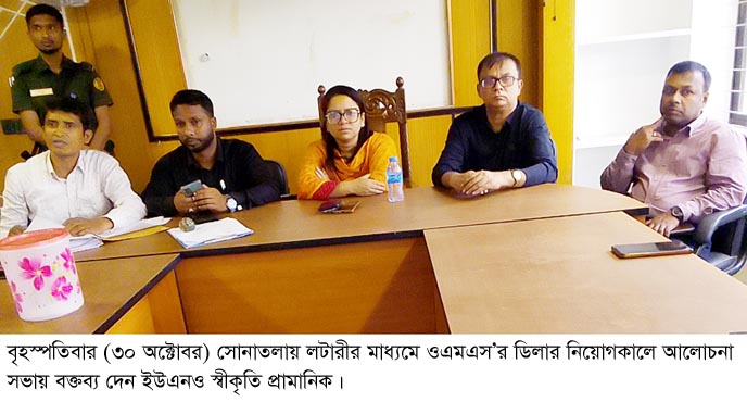 বগুড়া সংবাদ : বগুড়ার সোনাতলা পৌর এলাকার ৬টি নির্ধারিত বিক্রয় কেন্দ্রের জন্য লটারীর মাধ্যমে ওএমএস’র ডিলার নিয়োগ সম্পন্ন হয়েছে। বৃহস্পতিবার (৩০ অক্টোবর) বিকেলে উপজেলা পরিষদের সম্মেলন কক্ষে লটারী সম্পন্ন হয়। এরমধ্যে ৫ জন বিনা প্রতিদ্ব›িদ্বতায় ডিলার নির্বাচিত হয়েছেন। এ পাঁচ কেন্দ্রের প্রতিটিতে একাধিক করে প্রার্থী থাকলেও লটারীর আগেই একজন করে বাদে অন্যরা প্রত্যাহারের আবেদন করেন। তবে এদিন লটারীর মাধ্যমে প্রকাশ্যে ডিলার নিয়োগ হয়েছে একজন। উপজেলা নির্বাহী কর্মকর্তা স্বীকৃতি প্রামানিক জানান, ৫টি বিক্রয় কেন্দ্রের প্রতিটিতে ডিলার নিয়োগ প্রাপ্তির জন্য একাধিক ব্যক্তি আবেদন করেছিলেন। সেই ৫টি কেন্দ্রে একজন করে বাদে অন্যরা প্রত্যাহারের আবেদন করায় সেক্ষেত্রে ৫ কেন্দ্রে পাঁচজন ডিলার বিনা প্রতিদ্বদ্বিতায় নির্বাচিত হয়। উপজেলা খাদ্য নিয়ন্ত্রক শাহ্ মোঃ শাহেদুর রহমান জানান,পৌর এলাকার কামারপাড়া বিক্রয় কেন্দ্রে ডিলার নিয়োগ প্রাপ্তির জন্য একাধিক ব্যক্তি আবেদন করেন। এখানে কেউ প্রত্যাহারের আবেদন না করায় প্রকাশ্যে লটারীর মাধ্যমে ডিলার (একজন) নিয়োগ করা হয়। অন্য ৫টি কেন্দ্রের প্রতিটিতে একাধিক ব্যক্তি আবেদন করলেও লটারীর আগেই একজন করে ছাড়া অন্যরা প্রত্যাহারের আবেদন করেন। যার ফলে সেই পাঁচ কেন্দ্রে ৫জন ডিলার বিনা প্রতিদ্ব›িদ্বতায় নির্বাচিত হয়। এ সময় অন্যদের মধ্যে উপস্থিত ছিলেন উপজেলা কৃষি কর্মকর্তা সোহরাব হোসেন,মহিলা বিষয়ক কর্মকর্তা মাঈনুল হক,যুব উন্নয়ন কর্মকর্তা শাহ জামাল, সোনাতলা খাদ্য গুদামের ওসিএলএসডি জালাল উদ্দিন সরদার,হরিখালী খাদ্য গুদামের ওসিএলএসডি আবু সাইদ খন্দকার,পরিদর্শক কাজী হাসিবুল হাসান,সহকারী পরিদর্শক সাজু মিয়া,সোনাতলা পৌরসভার প্রধান সহকারী রুহুল আমিন রাজু,বিএনপি ও অঙ্গদলের বেশকিছু নেতৃবৃন্দ ও স্থানীয় কয়েকজন গণমাধ্যমকর্মি। যারা ডিলার নিয়োগ প্রাপ্ত হয়েছেন তারা হলেন সেলিম রেজা বাবলা,আরিফুল ইসলাম,সামছুন্নাহার বেগম,শাহ আলম,শামীমা বেগম ও ওবায়দুল হক। উল্লেখ্য, এদিন সুষ্ঠু পরিবেশের মধ্য দিয়ে ওএমএস’র ডিলার নিয়োগ সম্পন্ন হয়েছে।