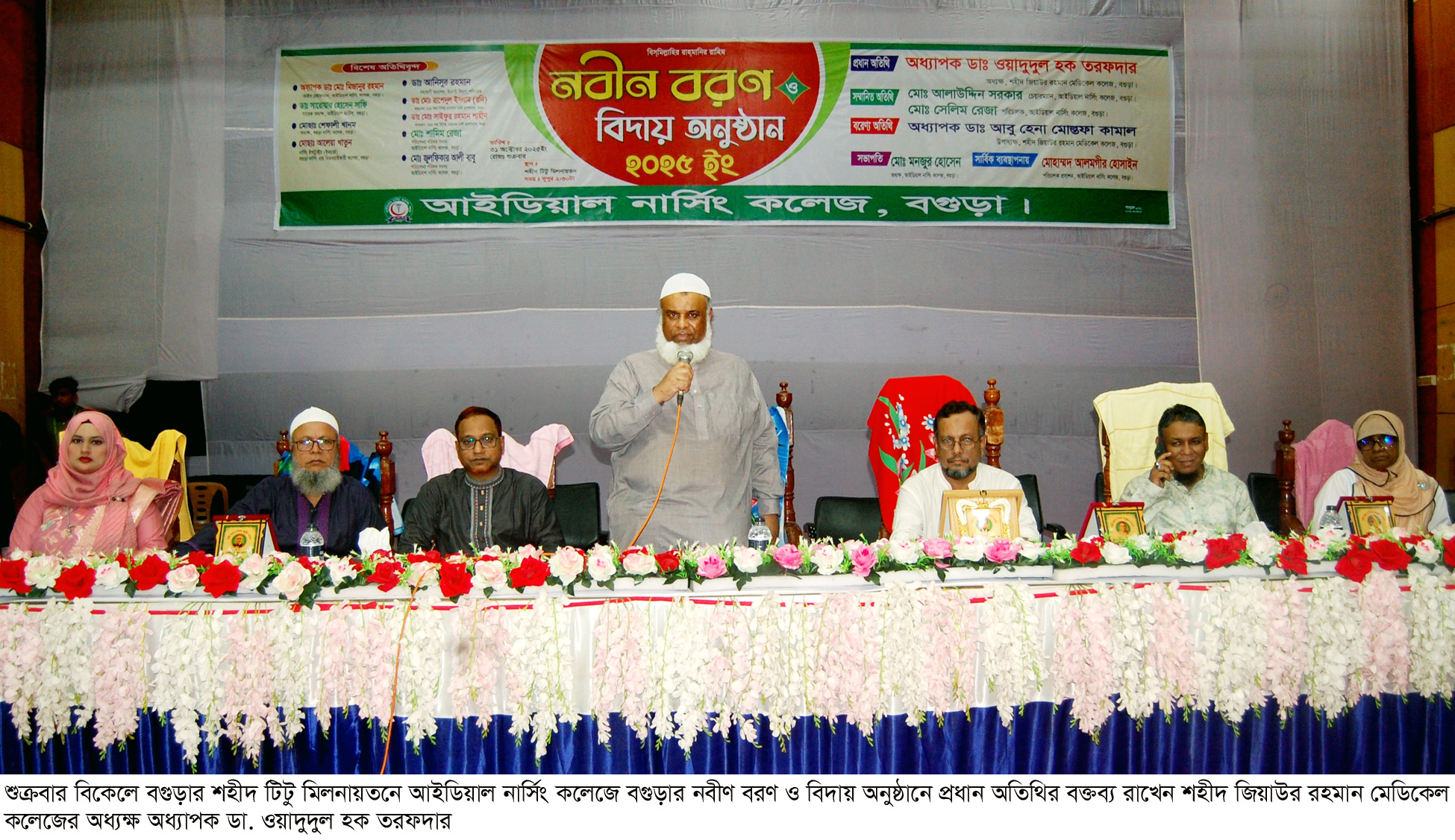 বগুড়া সংবাদ : শুক্রবার বিকেলে বগুড়ার টিটু মিলনায়তনে বগুড়া আইডিয়াল নার্সিং কলেজের নবীন বরণ ও বিদায় অনুষ্ঠান অধ্যক্ষ মনজুর হোসেনের সভাপতিত্বে অনুষ্ঠিত হয়। অনুষ্ঠানে প্রধান অতিথি ছিলেন শহীদ জিয়াউর রহমান মেডিকেল কলেজের অধ্যক্ষ অধ্যাপক ডা. ওয়াদুদুল হক তরফদার নাহিদ। বিশেষ অতিথি ছিলেন শহীদ জিয়াউর রহমান মেডিকেল কলেজের উপাধ্যক্ষ অধ্যাপক ডা. আবু হেনা মোস্তফা কামাল, বগুড়া নার্সিং কলেজের অধ্যক্ষ শেফালী খানম, আইডিয়াল নার্সিং কলেজের চেয়ারম্যান আলাউদ্দিন সরকার, পরিচালক সেলিম রেজা, পরিচালক জুলফিকার আলী বাবু, পরিচালক মোহাম্মদ আলমগীর হোসাইন, পরিচালক শামীম রেজা। অনুষ্ঠানে নবীণদের ফুল দিয়ে বরণ ও বিদায়ীদের ক্রেস্ট প্রদান করা হয়।