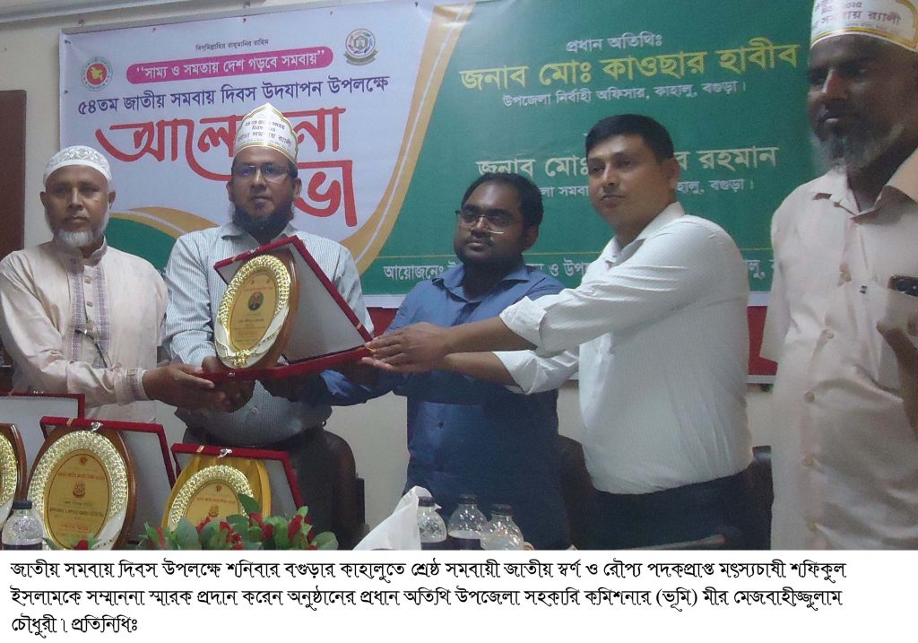আলোচনা সভা ও সম্মাননা স্মারক প্রদান অনুষ্ঠানে সভাপতিত্ব করেন কাহালু উপজেলা সমবায় অফিসার মাহবুবর রহমান।