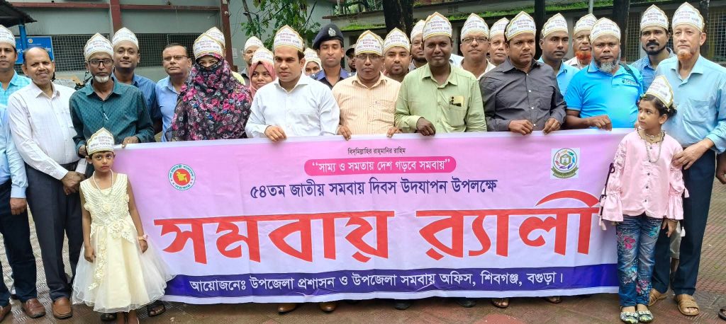বগুড়া সংবাদ :  সাম্য ও সমতায় দেশ গড়বে সমবায়” এই প্রতিপাদ্যকে সামনে রেখে বগুড়ার শিবগঞ্জে  অনুষ্ঠিত হলো ৫৪তম জাতীয় সমবায় দিবস। দিবসটি উপলক্ষে বেলা ১১টায় উপজেলা পরিষদ চত্বরে এক র‌্যালী বের হয়ে পৌর এলাকার প্রধান প্রধান সড়ক প্রদক্ষিন শেষে একই স্থানে শেষ হয় । র‌্যালী শেষে জাতীয় পতাকা ও সমবায় পতাকা উত্তোলন করেন। পরে শহীদ হাফিজার রহমান হল রুমে এক আলোচনা সভা উপজেলা সমবায় কর্মকর্তা ফাতেমা তুজ-জহুরা এর সভাপতিত্বে অনুষ্ঠিত হয়। এসময় প্রধান অতিথির বক্তব্য রাখেন উপজেলা নির্বাহী কর্মকর্তা জিয়াউর রহমান। অন্যান্যদের মধ্যে বক্তব্য রাখেন  উপজেলা মাধ্যমিক কর্মকর্তা গোলাম মাহবুব মোর্শেদ, সহকারী কর্মকর্তা শাহ আপেল মাহমুদ, মহিলা বিষয়ক কর্মকর্তা আশরাফুল ইসলাম, হিসার রক্ষন কর্মকর্তা রেজাউল ইসলাম, প্রধান শিক্ষক তাজুল ইসলাম প্রমুখ। আলোচনা স