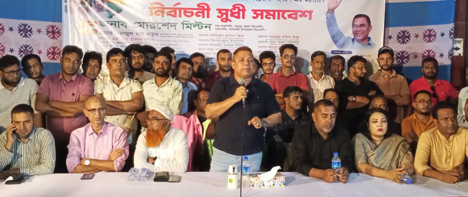 বগুড়া সংবাদ : (জাহাঙ্গীর আলম লাকি গাবতলী বগুড়া) প্রতিনিধি : গতকাল সোমবার বগুড়ার গাবতলী পৌর সভাধীন ২নং ওয়ার্ড বিএনপি ও অঙ্গ দলের আয়োজনে নির্বাচনী সুধী সমাবেশ অনুষ্ঠিত হয়েছে। পৌর ওলামা দলের সভাপতি আলমগীর হোসেন আলমের সভাপতিত্বে এতে প্রধান অতিথির বক্তব্য রাখেন, জেলা বিএনপির সহ-সভাপতি ও উপজেলা বিএনপির সভাপতি মোরশেদ মিল্টন। জেলা বিএনপির যুগ্ম সাধারণ সম্পাদক ও গাবতলী উপজেলা বিএনপির সাধারণ সম্পাদক এনামুল হক নতুন, উপজেলা বিএনপির সংগঠনিক সম্পাদক শাহাদাত হোসেন খান সাগর, উপজেলা বিএনপির সহ-সভাপতি ও নেপালতলী ইউনিয়ন বিএনপির সভাপতি সাবেক চেয়ারম্যান জুলফিকার হায়দার গামা, উপজেলা বিএনপির যুগ্ম সাধারণ সম্পাদক ও মহিলা দলের সভানেত্রী সুরাইয়া জেরিন রনি, উপজেলা বিএনপির প্রচার ও প্রকাশনা সম্পাদক এম আর ইসলাম রিপন, সহ-সাধারণ সম্পাদক আব্দুল গফুর টুকু, পৌর বিএনপির যুগ্ম সাধারণ সম্পাদক হারুনুর রশিদ হারুন, উপজেলা যুবদলের সিনিয়র যুগ্ম আহ্বায়ক রুহুল হাসান রুহিন, যুগ্ম আহবায়ক মহব্বত আলী,