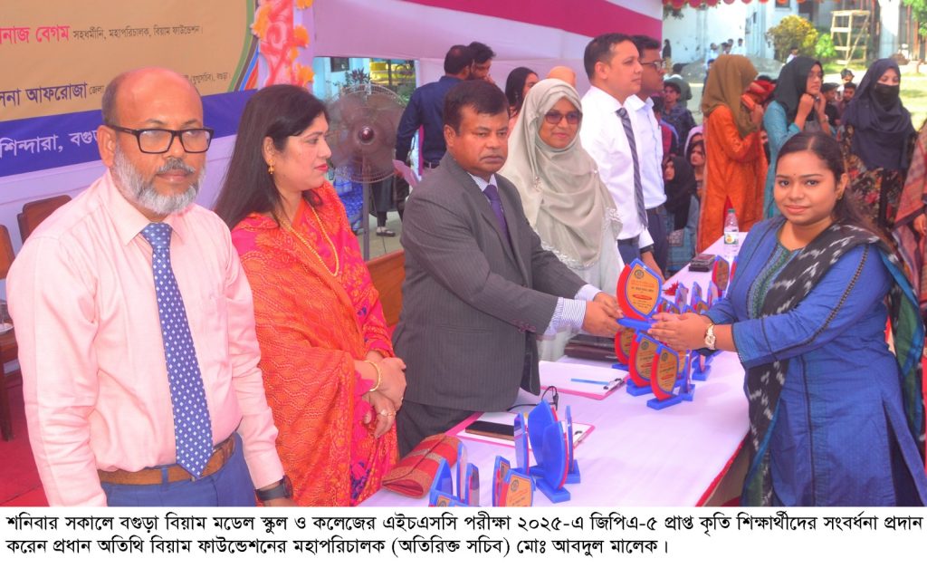 বগুড়া জেলা প্রশাসক হোসনা আফরোজা এর সভাপতিত্বে এতে প্রধান অতিথির বক্তব্য রাখেন বিয়াম ফাউন্ডেশনের মহাপরিচালক (অতিরিক্ত সচিব) মোঃ আবদুল মালেক। প্রধান অতিথির বক্তব্যে তিনি বলেন, শিক্ষা শুধু পরীক্ষায় পাশের জন্য নয়। ভালো মানুষ ও দক্ষ নাগরিক গড়ার জন্য প্রয়োজন। ভবিষ্যৎ প্রজন্মকে আধুনিক শিক্ষা, নৈতিকতা ও মানবিক মূল্যবোধ নিয়ে এগিয়ে যেতে হবে।