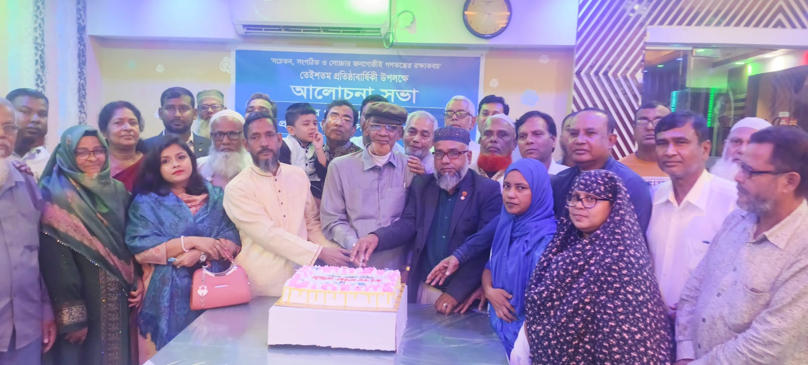 বগুড়া সংবাদ : সুশাসনের জন্য নাগরিক (সুজন)’র ২৩ তম প্রতিষ্ঠা বার্ষিকী উপলক্ষে বগুড়ায় কেক কর্তন ও আলোচনা সভা অনুষ্ঠিত হয়েছে। ৷ সুজন বগুড়া জেলা শাখার আয়োজনে বুধবার (১২ নভেম্বর) সন্ধ্যায় শহরের হোটেল উডবার্ন হল রুমে রাষ্ট্রের গণতান্ত্রিক রুপান্তরে সুজন প্রস্তাবিত জাতীয় সনদের বাস্তবায়ন চাই শীর্ষক আলোচনা সভা জেলা সভাপতি প্রফেসর ড. আশফাক হোসেন এর সভাপতিত্বে ও সাধারন সম্পাদক হুমায়ুন ইসলাম তুহিনের সঞ্চালনায় অনুষ্ঠিত হয়। সভায় বক্তব্য রাখেন-সুজনের জেলা শাখার সহ-সভাপতি আব্দুর রহমান, সহ সাধারণ সম্পাদক সেলিম রেজা সানু, সাংগঠনিক সম্পাদক মমিনুর রশীদ শাইন, সহ সাংগঠনিক সম্পাদক মাহবুবর রহমান চপল, কোষাধ্যক্ষ নুর হাবীব, সাংস্কৃতি সম্পাদক সাইফুল ইসলাম, নন্দীগ্রাম উপজেলা সভাপতি খন্দকার মোঃ আব্দুস শুকুর,শাখারিয়া সভাপতি মিজানুর রহমান মিঠু,সদস্য রফিকুল ইসলাম, ববিতা রানী বর্মন,ইউসুফ আলী,সুলতান,জহুরুল ইসলাম,আব্দুর রহমান,আব্দুল হামিদ,আবুল কালাম আজাদ চাঁন,তানভীর হোসেন,গোলাম আনসারী, প্রমুখ।