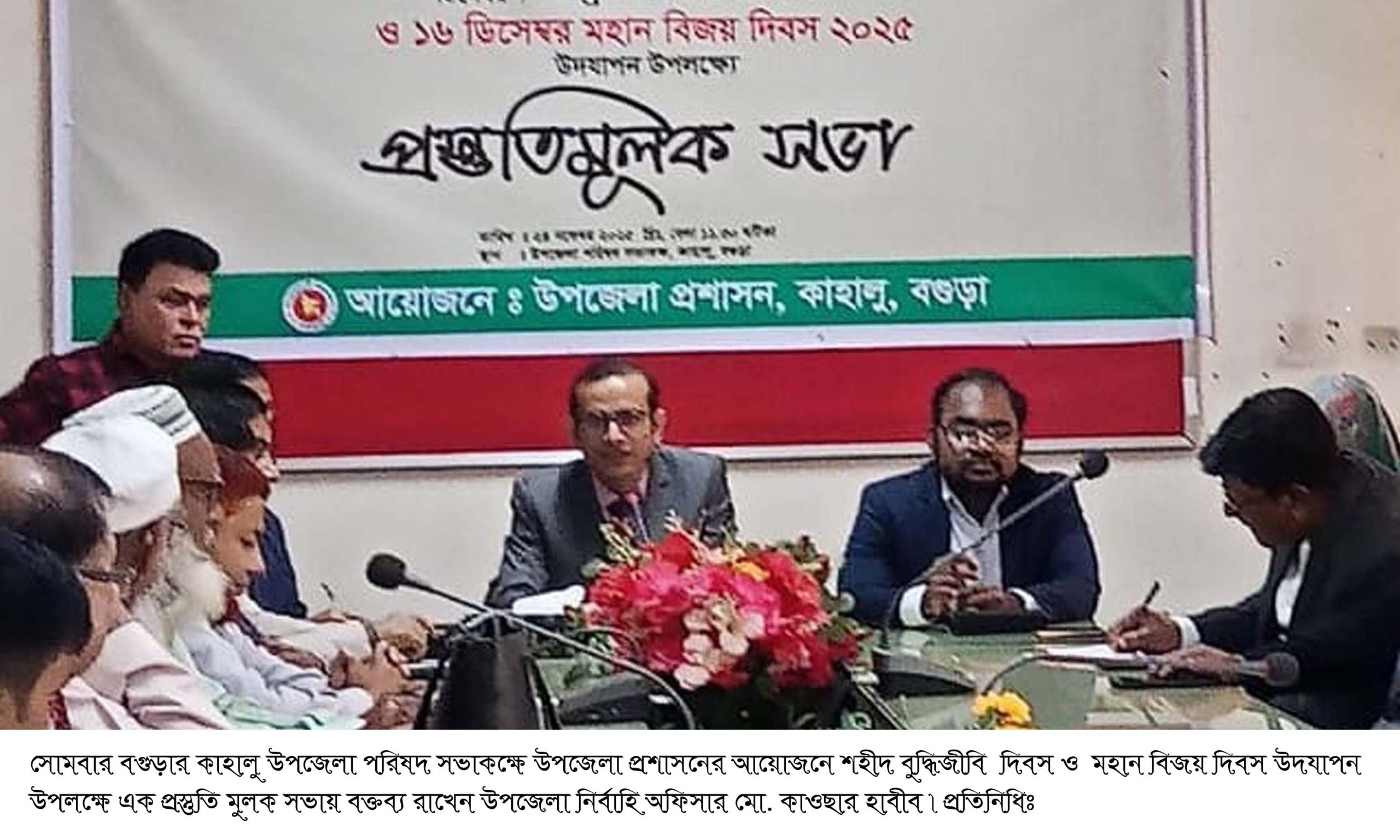 কাহালু উপজেলা প্রশাসনের উদ্যোগে বিজয় দিবস উদযাপনের প্রস্তুতি মুলক সভা অনুষ্ঠিত