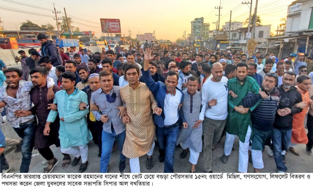 শহর যুবদলের সাবেক সভাপতি ও ১৫নং ওয়ার্ডের সাবেক কাউন্সিল মাসুদ রানা মাসুদের সঞ্চালনায় পথসভায় বক্তব্য রাখেন জেলা যুবদলের সাবেক সভাপতি সিপার আল বখতিয়ার। তিনি বলেন, তারেক রহমান সদর আসনে নির্বাচন করবেন এজন্য আমরা বগুড়া বাসি ধন্য। ১৭ বছর ফ্যাসিস্ট সরকারের আমলে নির্বাচন হয়নি। সাধারণ মানুষ ভোট প্রয়োগ করতে পারেনি। আওয়ামী লীগের আমলে ভোট কক্ষে দেখা গিয়েছে গরু, ছাগল ও কুকুরদের। যারা আওয়ামীলীগ করেছে তারাও ভোটকেন্দ্রে যায়নি কারণ তারাও জানে হাসিনা প্রহসনের নির্বাচন করেছে। খুব দ্রুত সময়ে তারেক রহমান দেশে ফিরবেন। তারেক রহমান বাংলাদেশকে উন্নতির শিখরে নিয়ে যাবেন। বগুড়ার মানুষ সর্বোচ্চ ভোট দিয়ে তারেক রহমানকে নির্বাচিত করবে। পথসভায় তিনি বিএনপি চেয়ারপার্সন বেগম খালেদা জিয়ার আশুরোগ মুক্তি কামনায় সবার দোয়া কামনা করেন।