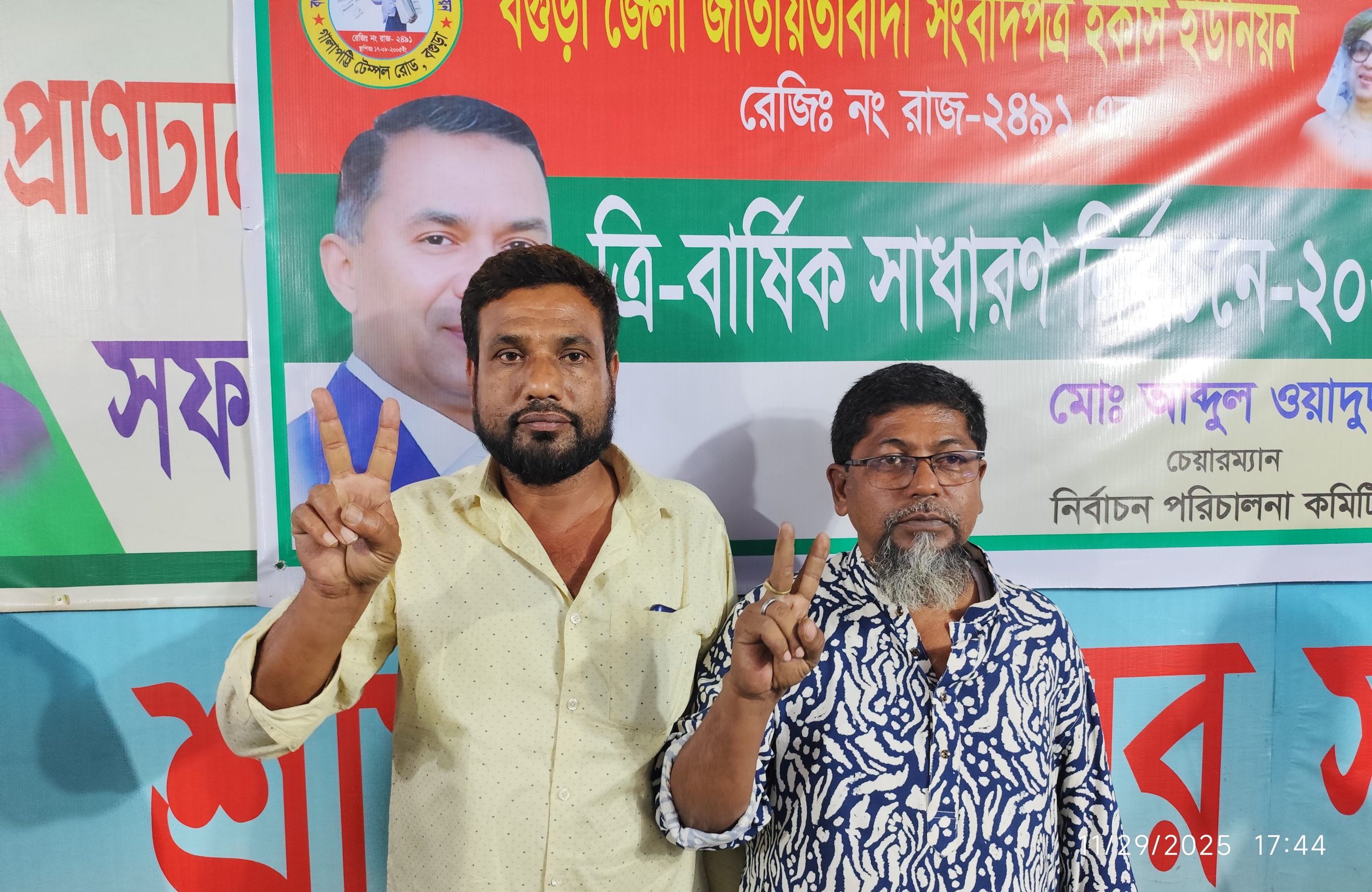 বগুড়া জেলা জাতীয়তাবাদী সংবাদপত্র হকার্স ইউনিয়ন (রেজিঃ নং রাজঃ ২৪৯১)-এর ত্রিবার্ষিক সাধারণ নির্বাচন ২০২৫ উৎসবমুখর পরিবেশে অনুষ্ঠিত হয়েছে। মোট ১৩টি পদে ১৫ জন প্রার্থী মনোনয়ন জমা দেন। এর মধ্যে ১১টি পদে প্রার্থীরা বিনা প্রতিদ্বন্দ্বিতায় নির্বাচিত হন। সাধারণ সম্পাদক ও কার্যনির্বাহী সদস্য পদের জন্য ভোটগ্রহণ অনুষ্ঠিত হয়।