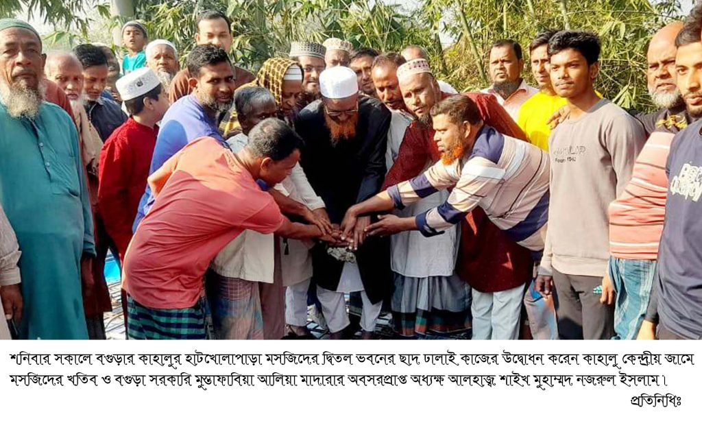 উক্ত ছাদ ঢালাই কাজর উদ্বাধন করন কাহালু কদ্রীয় জাম মসজিদর খতিব ও বগুড়া সরকারি মুস্তাফাবিয়া আলিয়া মাদারার অবসরপ্রাপ্ত অধ্যক্ষ আলহাজ্ব শাইখ মুহাম্মদ নজরুল ইসলাম।