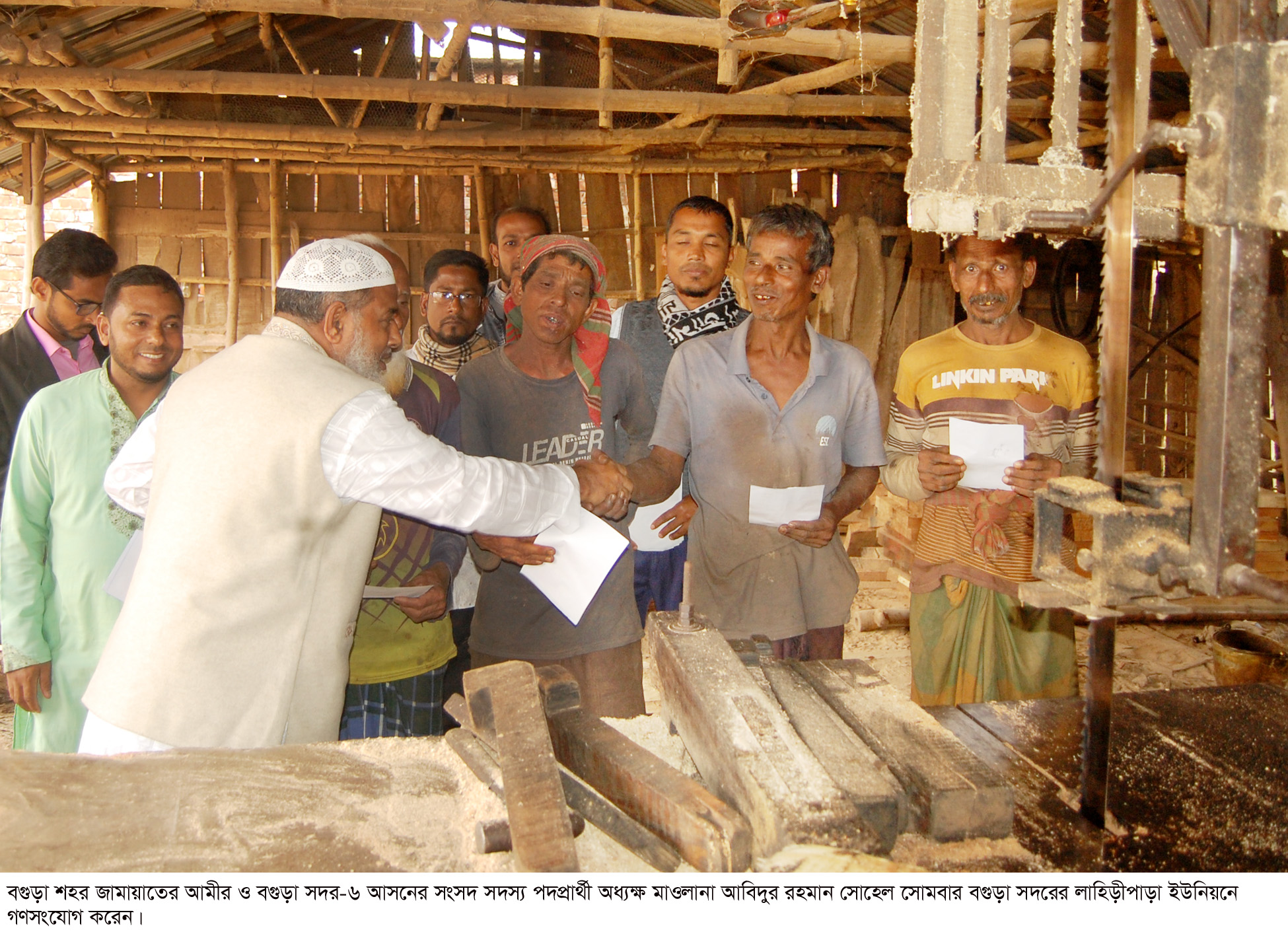বগুড়া সংবাদ : সোমবার বিকেলে বগুড়া সদরের লাহিড়ীপাড়া ইউনিয়ন জামায়াতের গণসংযোগ ও নির্বাচনী কর্মী সভা পাঁচ আউলিয়া মাদরাসা মাঠে ইউনিয়ন আমীর বেলাল উদ্দিনের সভাপতিত্বে অনুষ্ঠিত হয়। ইউনিয়ন সেক্রেটারী হেলাল উদ্দিনের পরিচালনায় অনুষ্ঠানে প্রধান অতিথি ছিলেন বগুড়া শহর আমীর ও বগুড়া সদর-৬ আসনের সংসদ সদস্য প্রার্থী অধ্যক্ষ মাওলানা আবিদুর রহমান সোহেল। বিশেষ অতিথি ছিলেন শহর সহকারী সেক্রেটারী অধ্যাপক রফিকুল আলম, সমাজসেবা সম্পাদক মাওলানা আব্দুল হামিদ বেগ, মানব সম্পদ সম্পাদক ও ইউনিয়ন নির্বাচন পরিচালক সেলিম রেজা। আরো উপস্থিত ছিলেন মাওলানা ইমরান হোসেন, আব্দুস সোবাহান প্রমুখ। অনুষ্ঠানে প্রধান অতিথি বলেন, নির্বাচনী এলাকায় ভোটারদের সাথে কথা বলে জানতে পারছি, জনগন অধীর আগ্রহে বসে আছে দাড়িপাল্লায় ভোট দেওয়ার জন্য। তারা বলছে এখন সময় এসেছে সন্ত্রাস দুর্নীতি চাঁদাবাজ মুক্ত সমাজ গঠন করতে হবে। আপনারাও কুরআনের সমাজ কায়েম করতে ন্যায় ও ইনসাফের প্রতীক দাঁড়িপাল্লায় ভোট দিয়ে জয়যুক্ত করুন।
