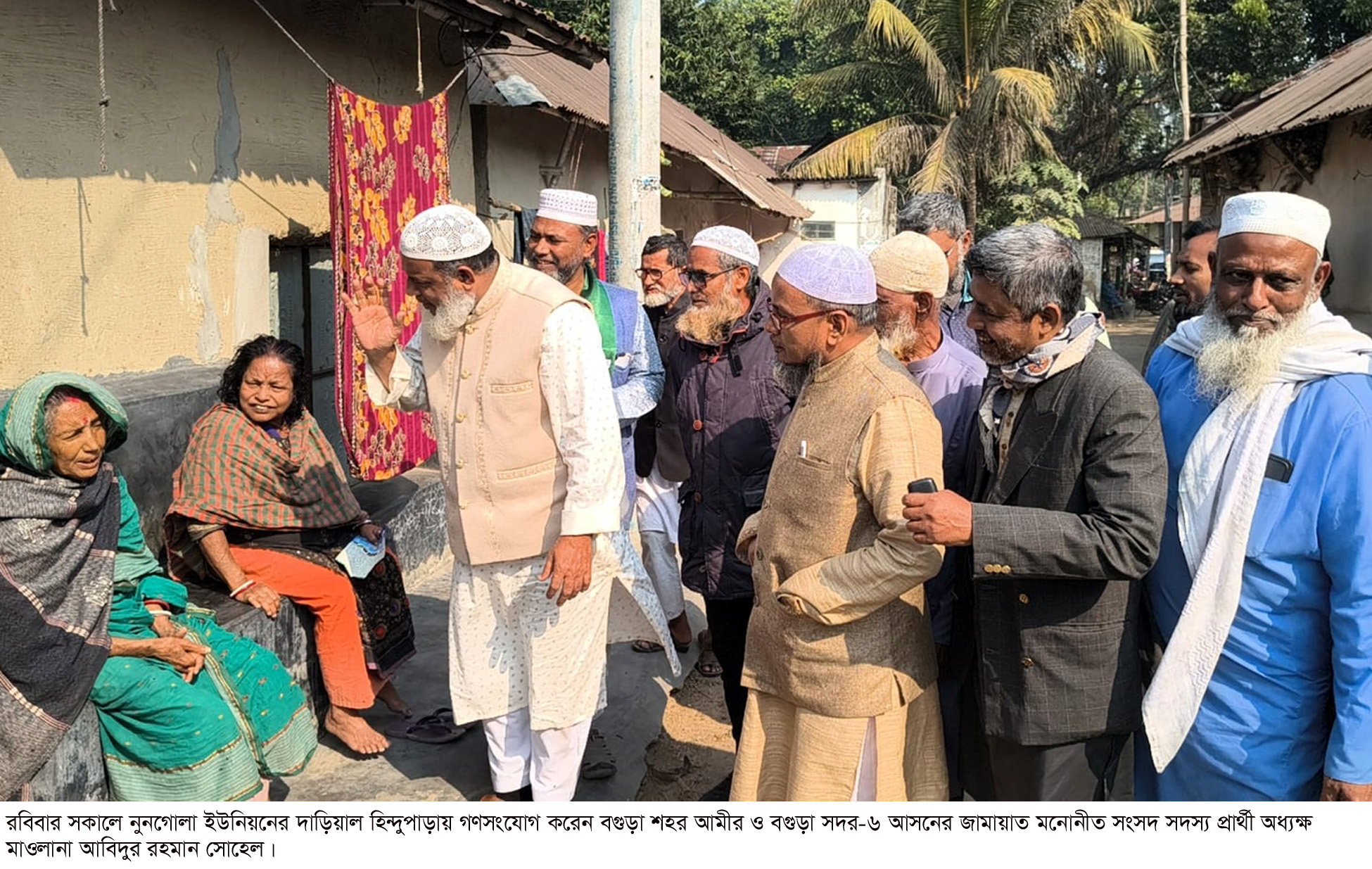 বগুড়া সংবাদ : বগুড়া শহর জামায়াতের আমীর ও বগুড়া-৬ সদর আসনের সংসদ সদস্য পদ প্রার্থী অধ্যক্ষ মাওলানা আবিদুর রহমান সোহেল রবিবার সকালে বগুড়া সদরের নুনগোলা ইউনিয়নের দাড়িয়াল, শশীবদনী ও আশোকোলা হিন্দুপাড়ায় গণসংযোগ ও পথসভা করেন। এ সময় উপস্থিত ছিলেন শহর অফিস সেক্রেটারী মাওলানা আব্দুল হামিদ বেগ, নুনগোলা ইউনিয়ন আমীর মাওলানা আমজাদ হোসেন, নায়েবে আমীর ডা. হারুনার রশিদ, সেক্রেটারী শরিফুল ইসলাম, প্রচার সম্পাদক ডা. হাসান আলী, সাইফুল ইসলাম ভান্ডারী, আপেল মাহমুদ, আরিফুল ইসলাম প্রমুখ। পরে দাড়িয়ালে পূজা মন্ডপ নেতৃবৃন্দের সাথে মত বিনিময় করেন। এ সময় অধ্যক্ষ আবিদুর রহমান সোহেল বলেন, সুখী সমৃদ্ধশালী ঘুষ দুর্নীতি মুক্ত কল্যাণ রাস্ট্র গঠনে সকল ধর্মের মানুষ এক হয়ে হাতে হাত রেখে কাজ করতে হবে। তাহলে দেশ এগিয়ে যাবে। দেশে কোন সংখ্যালঘু নেই। আমরা সবাই বাংলাদেশী। দেশটা আমাদের সবার। ফ্যাসিস্ট সরকার পালানোর পর আপনারা যখন ভয় অনুভব করছিলেন তখন আমাদের নেতাকর্মীরা আপনাদের পূজা মন্ডপ পাহারা দিয়েছে। আপনাদের কোন সম্পদ আমাদের নেতাকর্মীরা দখল করেনি। এ রকম কোন অভিযোগ কোন মানুষ দিতে পারবেনা। আমরা কাউকে দখল করতে দিবো না। অনুষ্ঠানে বক্তব্য রাখেন পূজা উদযাপন পরিষদের নেতা ডা. সুনীল চন্দ্র দাস, অজিত চন্দ্র দাস, সহদেব চন্দ্র দাস।