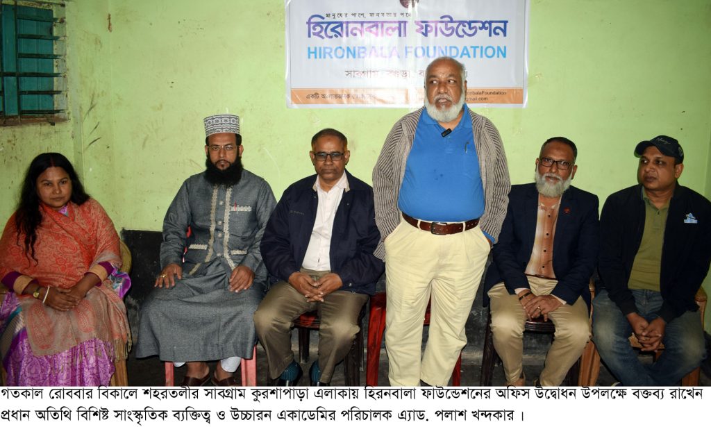বগুড়া সংবাদ : মানুষের পাশে মানবতার পথে এই স্লোগানকে সামনে রেখে বগুড়ায় যাত্রা শুরু করেছে একটি অলাভজনক ও স্বেচ্ছাসেবী সংগঠন হিরনবালা ফাউন্ডেশন। গতকাল রোবার বিকালে শহরতলীর সাবগ্রাম কুরশাপাড়া এলাকায় দোয়া মাহফিল করে এই সংগঠনের অফিস কার্যালয় উদ্বোধন করা হয়। এতে প্রধান অতিথি ছিলেন বিশিষ্ট সাংস্কৃতিক ব্যক্তিত্ব ও উচ্চারন একাডেমির পরিচালক এ্যাড. পলাশ খন্দকার। সংগঠনের সভাপতি শুব্রা সাহার সভাপতিত্বে অনুষ্ঠানে বিশেষ অতিথি ছিলেন বগুড়া লেখক চক্রের সাধারন সম্পাদক আব্দুর রাজ্জাক বকুল, সাইফুর রহমান ফিরোজ। এসময় সংগঠনের সদস্য নারগিস আক্তার সহ অনান্য সদস্য ও আমন্ত্রিত অতিথিরা উপস্থিত ছিলেন। দোয়া পরিচালনা করেন মাওলানা মোঃ ফখরুল ইসলাম সিদ্দিকী। অনুষ্ঠান পরিচালনা করেন সংগঠনের সাধারন সম্পাদক ও সিনিয়র ফটো সাংবাদিক বজলুর রশিদ সুইট। সভাপতি শুব্রা সাহা বলেন আমদের সংগঠন আর্তমানবতার সেবায় নিয়োজিত। এই সংগঠনের কাজ শুধু বগুড়ায় নয়, আমরা সারা বাংলাদেশের অসহায় ও দরিদ্র মানুষের সেবায় কাজ করে যাব। সকল মানুষের বিপদে আপদে পাশে দাড়ানোর জন্য তিনি সকলের সহযোগিতা কামনা করেন।