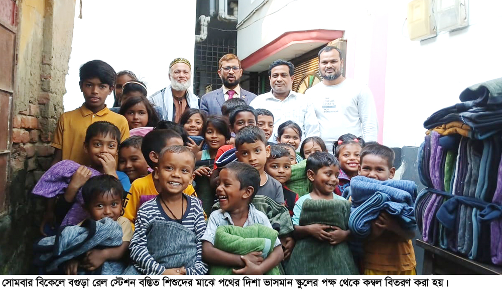 বগুড়া সংবাদ : সুবিধা বঞ্চিত শিশুদের পড়াশোনার নির্ভরযোগ্য প্রতিষ্ঠান পথের দিশা ভাসমান স্কুলের পক্ষ থেকে সোমবার বিকেলে বগুড়া রেল স্টেশন বস্তির (হাড্ডিপট্রি) সুবিধা বঞ্চিত শিশুদের মাঝে কম্বল বিতরণ করা হয়। এসম উপস্থিত ছিলেন বিশিষ্ট কবি ও গবেষক রেজাউল হক হেলাল, পথের দিশা ভাসমান স্কুলের স ভাপতি মহররম আলী, সাধারণ সম্পাদক শামীম আহমেদ, স্কুলের পরিচালক মোস্তফা মোঘল, শিক্ষক বৃষ্টি আক্তারসহ অভিভাবক মন্ডলী। অনুষ্ঠানে ৬০ জন সুবিধা বঞ্চিত শিশুকে কম্বল প্রদান করা হয়। অনুষ্ঠানে জানানো হয় পথের দিশা ভাসমান স্কুলে বস্তির সুবিধা বঞ্চিত শিশুদের বিনামূল্যে পড়াশোনার ব্যবস্থা রয়েছে। সেই সাথে শিক্ষার্থীদেরকে বিনামূল্যে শিক্ষা সামগ্রী প্রদান করা হয়। এছাড়া সারা বছর এসব শিশুদের জন্য নানান আয়োজন করে থাকে পথের দিশা। স্কুলের পক্ষ থেকে সমাজের বিত্তবানদের এগিয়ে আসার আহ্বান জানানো হয়।