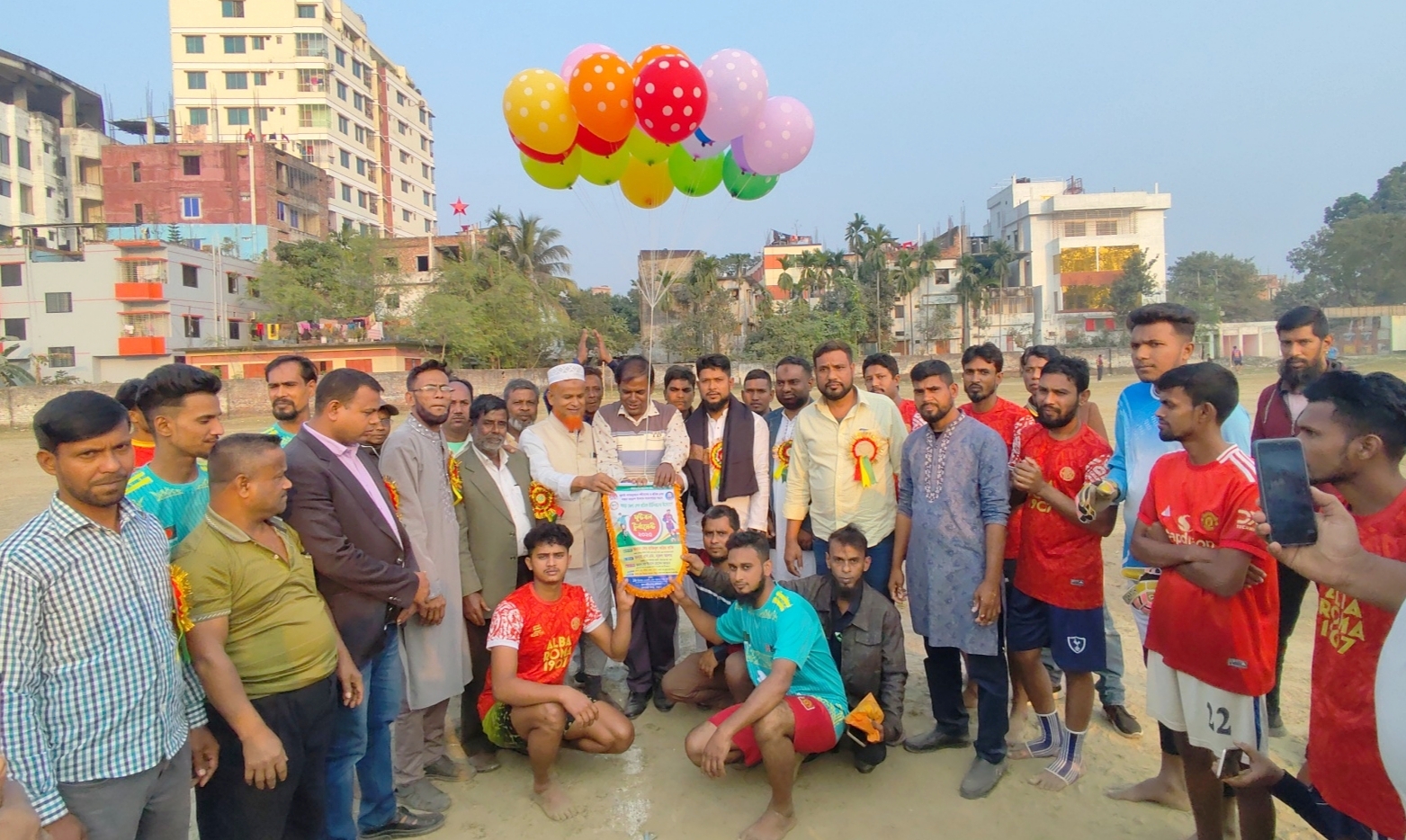 বগুড়া সংবাদ : জুলাই গণঅভ্যুত্থান শহীদদের ও শ্রমিক নেতা মরহুম জহুরুল ইসলাম সওদাগরের স্মরণে বগুড়া জেলা লেদ শ্রমিক ইউনিয়নের উদ্যোগে ফুটবল টুর্নামেন্ট ২০২৫ ১ম পর্বের শেষ ম্যাচ শেষ ম্যাচ উদ্বোধনী খেলা অনুষ্ঠিত হয়েছে। শুক্রবার (১৯ ডিসেম্বর ) বিকেল ৩টায় শহীদ চান্দু স্টেডিয়াম সংলগ্ন মাঠে এ খেলার উদ্বোধন ঘোষণা করা হয়। উদ্বোধনী খেলায় অংশগ্রহণ করে মানিক টেলিকম একাদশ ও শফিকুল রানু একাদশ। খেলাকে ঘিরে শ্রমিক ইউনিয়নের সদস্য এবং স্থানীয় দর্শকদের মাঝে ছিল উৎসাহ ও উচ্ছ্বাস।উদ্বোধনী অনুষ্ঠানে প্রধান অতিথি হিসেবে উপস্থিত মোঃ রাজিবুল করিম রাফি ,সভাপতি, নিশিন্দারা ইউনিয়ন বিএনপি ও যুগ্ম সাধারণ সম্পাদক, বগুড়া সদর উপজেলা বিএনপি। উদ্বোধক হিসেবে উপস্থিত ছিলেন এস.এম. নূরুল আলম,প্রোপ্রাইটর, শরণ ইঞ্জিনিয়ারিং ওয়ার্কসপ, বিসিক শিল্প নগরী, বগুড়া। সভাপতিত্ব করেন লিটন শেখ বাঘা এবং সঞ্চালনায় ছিলেন অত্র সংগঠনের সাধারণ সম্পাদক মিজানুর রহমান মিঠু।এছাড়াও অতিথি হিসেবে উপস্থিত ছিলেন মোঃ জাহিদুল ইসলাম সাধারণ সম্পাদক, বগুড়া জেলা জাতীয়তাবাদী সংবাদপত্র হকার্স ইউনিয়ন।মোঃ ইশা খান সভাপতি, ধুনট উপজেলা রিক্সা ভ্যান শ্রমিক ইউনিয়ন, বগুড়া।মোঃ আরিফ খাঁন বাহাদুর প্রোপ্রাইটর, আরিক গার্মেন্টস, রেলওয়ে কড়িতলা মার্কেট, বগুড়া।লিটন দাস প্রোপ্রাইটর, লিটন ইঞ্জিনিয়ারিং ওয়ার্কসপ, রেলওয়ে মার্কেট, বগুড়া।মোঃ মুঞ্জুরুল আলম সাবেক অর্থ সম্পাদক, বগুড়া জেলা জাতীয়তাবাদী রিক্সা ভ্যান শ্রমিক দল। মোঃ আমিনুর ইসলাম সাপতি, বগুড়া জেলা জাতীয়তাবণী রিক্সা ভ্যান শ্রমিক দশ ১৮নং ওয়ার্ড বগুড়া পৌরসভা প্রমুখ।
