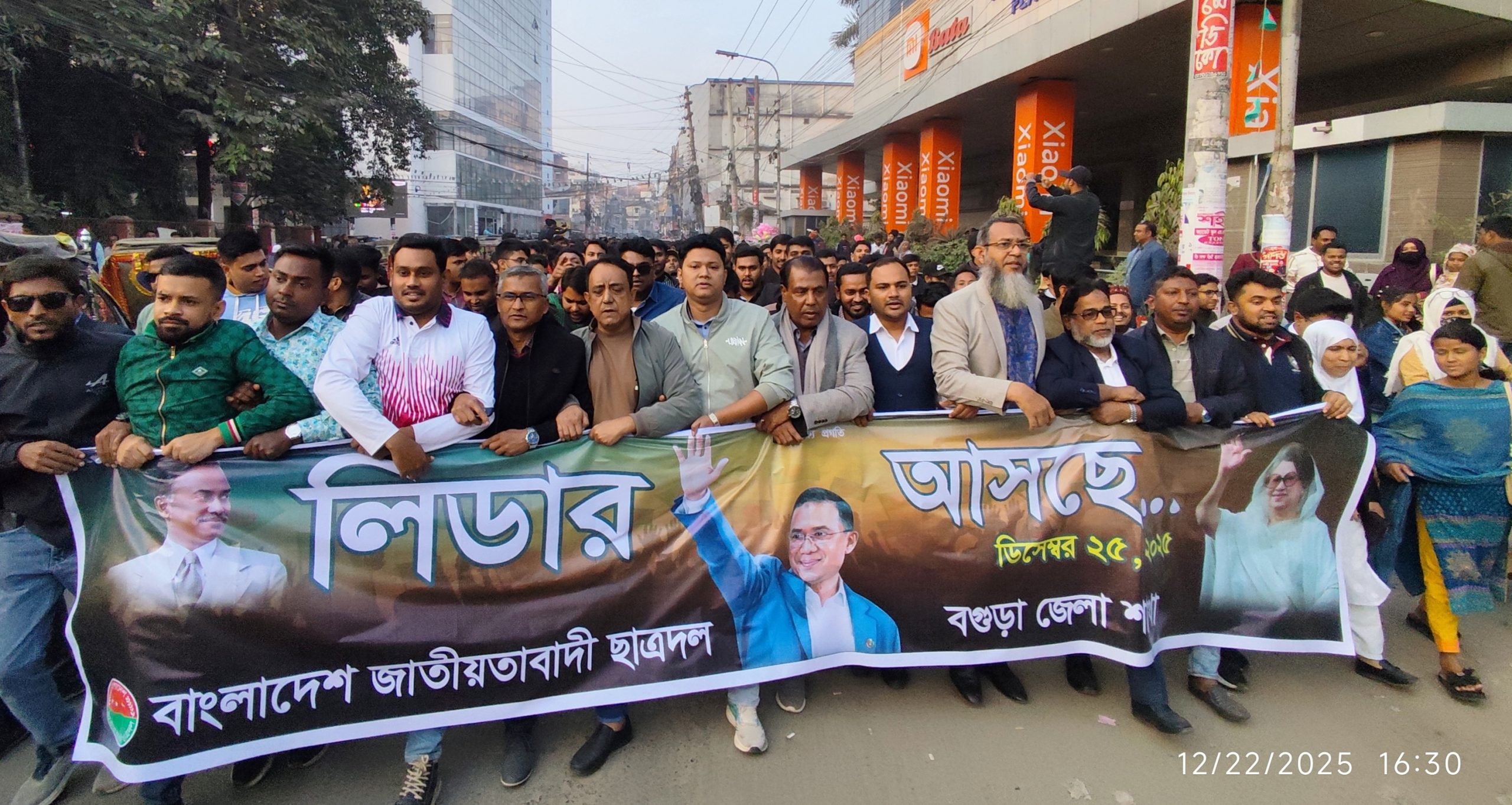 তারেক রহমানের স্বদেশ প্রত্যাবর্তনে বগুড়ায় ছাত্রদলের স্বাগত মিছিল