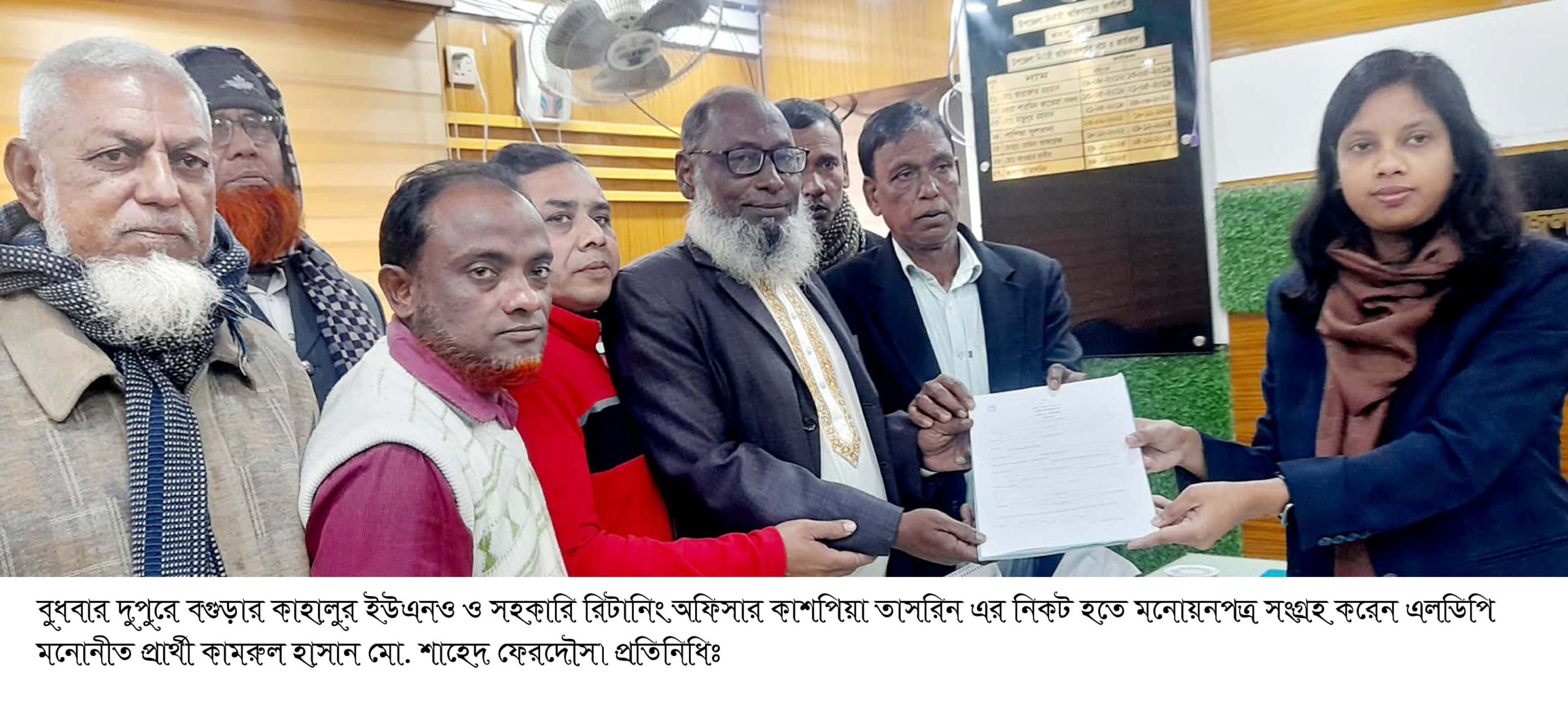 কাহালুতে এলডিপি মনোনীত প্রার্থী কামরুল হাসান শাহেদ ফেরদৌসের মনোনয়ন পত্র সংগ্রহ