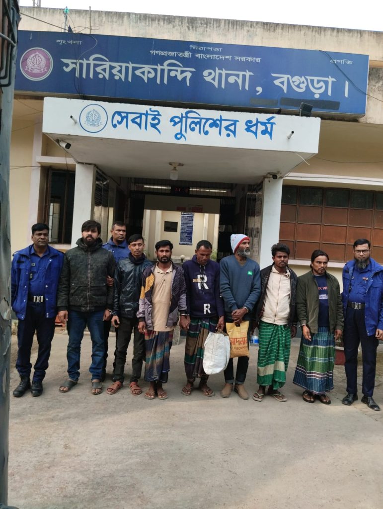 বুধবার (২৪ ডিসেম্বর) দিবাগত রাতে সারিয়াকান্দি থানার পুলিশ উপজেলার বিভিন্ন এলাকায় অভিযান পরিচালনা করে তাদের গ্রেপ্তার করে।