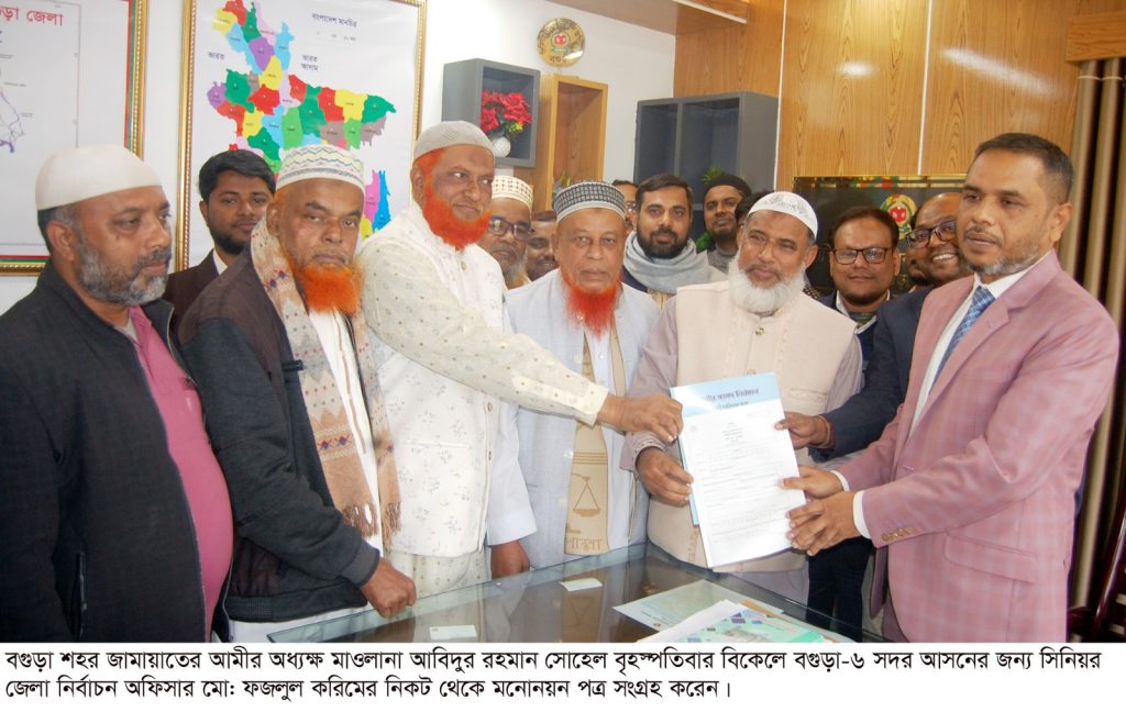 বগুড়া-৬ সদর আসনে জামায়াত প্রার্থীর মনোনয়নপত্র সংগ্রহ
