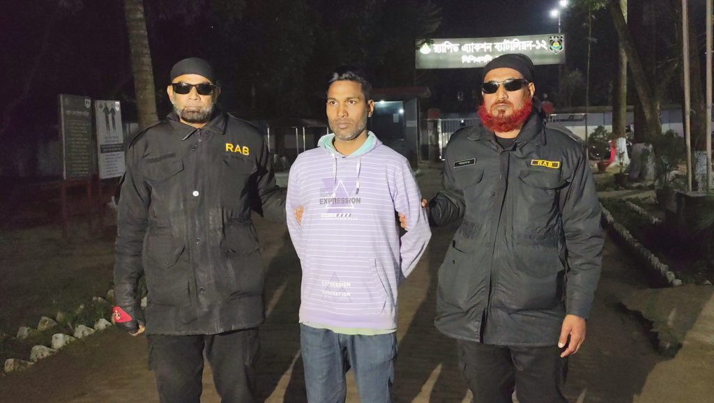 র্যাব-১২, সিপিএসসি বগুড়া এবং র্যাব-১, সিপিসি-২ উত্তরা’র যৌথ অভিযানে গাজীপুর জেলার টঙ্গী পূর্ব থানাধীন স্টেশন রোড এলাকা থেকে তাকে গ্রেফতার করা হয়।