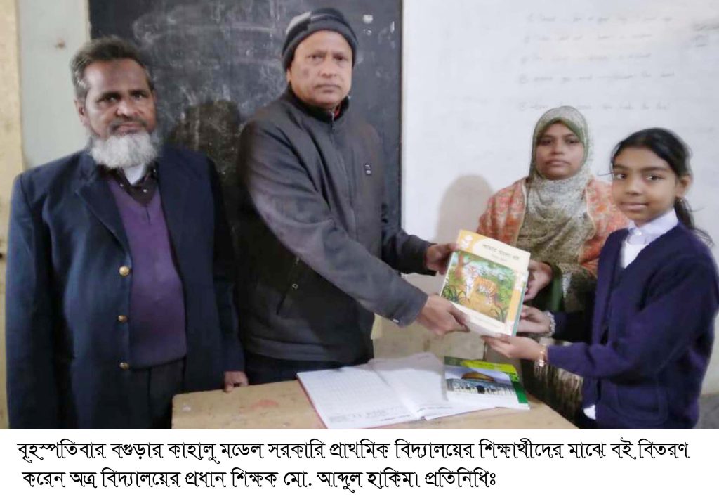 বগুড়া সংবাদ : বৃহস্পতিবার বগুড়ার কাহালু মডেল সরকারি প্রাথমিক বিদ্যালয়ের শিক্ষার্থীদের মাঝে বই বিতরণ করা হয়। বই বিতরণ করেন কাহালু মডেল সরকারি প্রাথমিক বিদ্যালয়ের প্রধান শিক্ষক মো. আব্দুল হাকিম।