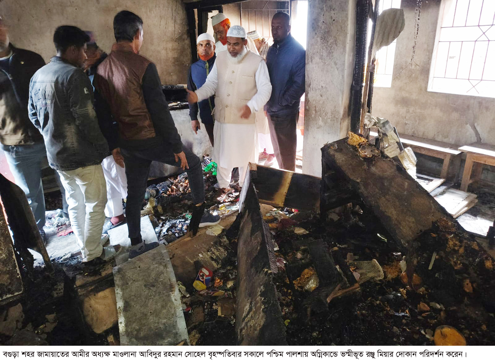 বগুড়া সংবাদ : বৃহস্পতিবার সকালে বগুড়া শহরের পশ্চিম পালশায় ক্ষতিকগ্রস্থ রঞ্জুর দোকান ঘর পরিদর্শন করলো জামায়াত নেতৃবৃন্দ। এ সময় উপস্থিত ছিলেন বগুড়া শহর জামায়াতের আমীর অধ্যক্ষ মাওলানা আবিদুর রহমান সোহেল, শহর জামায়াতের সেক্রেটারী অধ্যাপক আ স ম আব্দুল মালেক, শ্রমিক কল্যাণ ফেডারেশনের শহর সভাপতি আজগর আলী, জামায়াতের ১৫নং ওয়ার্ড আমীর আবু হুর ফারাজী, নায়েবে আমীর মুক্তার হোসেন, সেক্রেটারী ওবায়দুল হাসান, দিলদার হোসেন প্রমুখ। পরিদর্শনে তিনি পরিবারকে শান্তনা দেন। গত বুধবার ভোর রাতে আগুনে রঞ্জুর দোকান ভস্মীভূত হয়। পরে তিনি বগুড়া কলেজের অধ্যাপক অসুস্থ আব্দুস সালাম কে