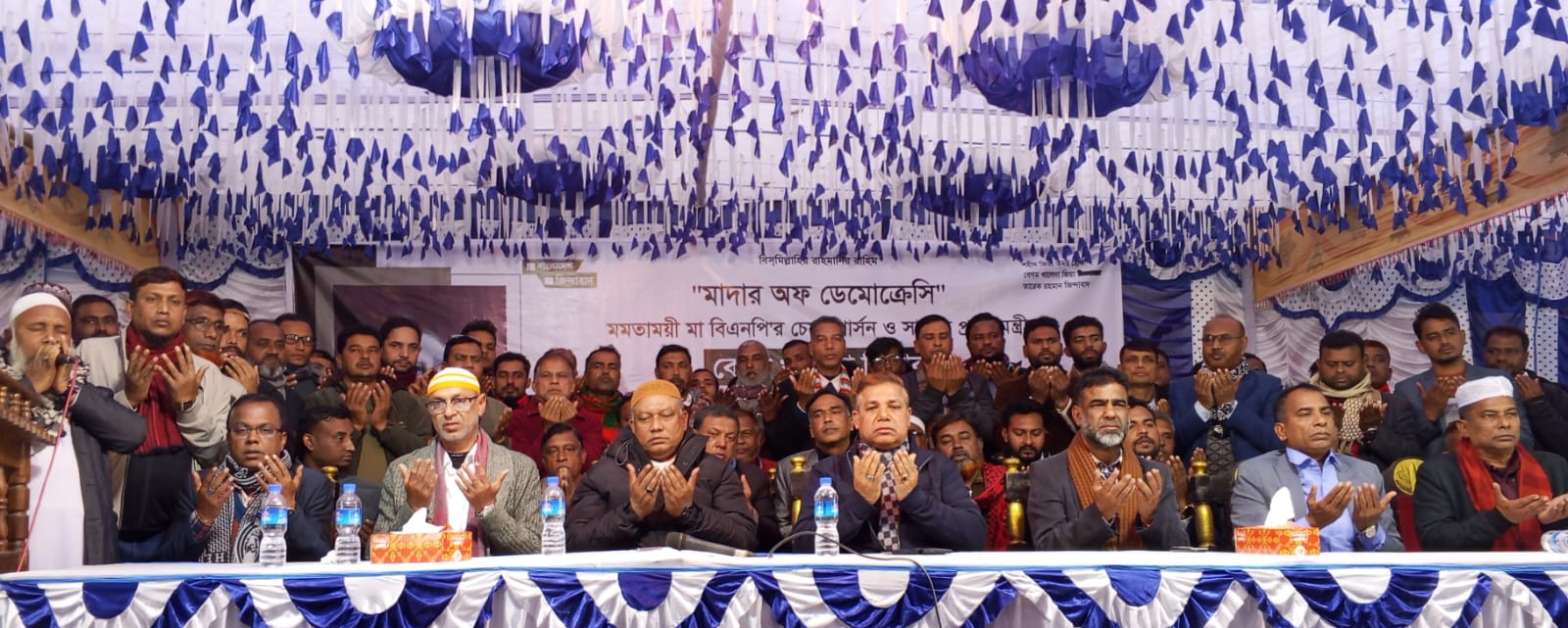 বগুড়া সংবাদ (জাহাঙ্গীর আলম লাকি গাবতলী বগুড়া) : বিএনপি’র চেয়ারপারসন মমতাময়ী মা বেগম খালেদা জিয়ার বিদেয়ী আত্মার মাগফেরাত কামনায় বগুড়ার গাবতলী নেপালতলী ইউনিয়ন বিএনপি ও অঙ্গদলের আয়োজনে কদমতলী স্কুল মাঠে দোয়া ও মিলাদ মাহফিল অনুষ্ঠিত হয়েছে। উক্ত দোয়া মাহফিল পূর্বক আলোচনা সভায় প্রধান অতিথির বক্তব্য রাখেন জেলা বিএনপির সহ-সভাপতি ও গাবতলী উপজেলা বিএনপির সভাপতি মোরশেদ মিল্টন। উপজেলা বিএনপি’র সহ সভাপতি জুলফিকার হায়দার গামার সভাপতিত্বে আরো বক্তব্য রাখেন জেলা বিএনপির যুগ্ম সাধারণ সম্পাদক ও উপজেলা বিএনপির সাধারণ সম্পাদক এনামুল হক নতুন, জেলা বিএনপি’র মানবাধিকার বিষয়ক সম্পাদক সাবেক মেয়র সাইফুল ইসলাম,উপজেলা বিএনপির যুগ্ম সাধারণ সম্পাদক মনজুর মোরশেদ, পৌর বিএনপি’র সাধারণ সম্পাদক আব্দুর রহিম পিন্টু, নেপালতলী ইউনিয়ন বিএনপি’র সাধারণ সম্পাদক সাজিদুর রহমান সুজন,বিএনপি নেতা রুবেল মাহমুদ, উপজেলা যুবদলের সিনিয়র যুগ্ম আহবায়ক রুহুল হাসান রুহীন, উপজেলা ছাত্রদলের সভাপতি নাজমুল হাসান ডিটল, সাধারণ সম্পাদক এস এম রাঙ্গা, পৌর ছাত্রদলের সভাপতি জাকিরুল ইসলাম লুকু, সাধারণ সম্পাদক তাসকিন রহমান, উপজেলা মৎস্যজীবী দলের সভাপতি আবু বক্কর সিদ্দিক, শ্রমিক দলের সভাপতি আলম আকন্দ, প্রমুখ। এছাড়াও সহযোগী সংগঠনের বিভিন্ন পর্যায়ের নেতৃবৃন্দ এ সময় উপস্থিত ছিলেন।