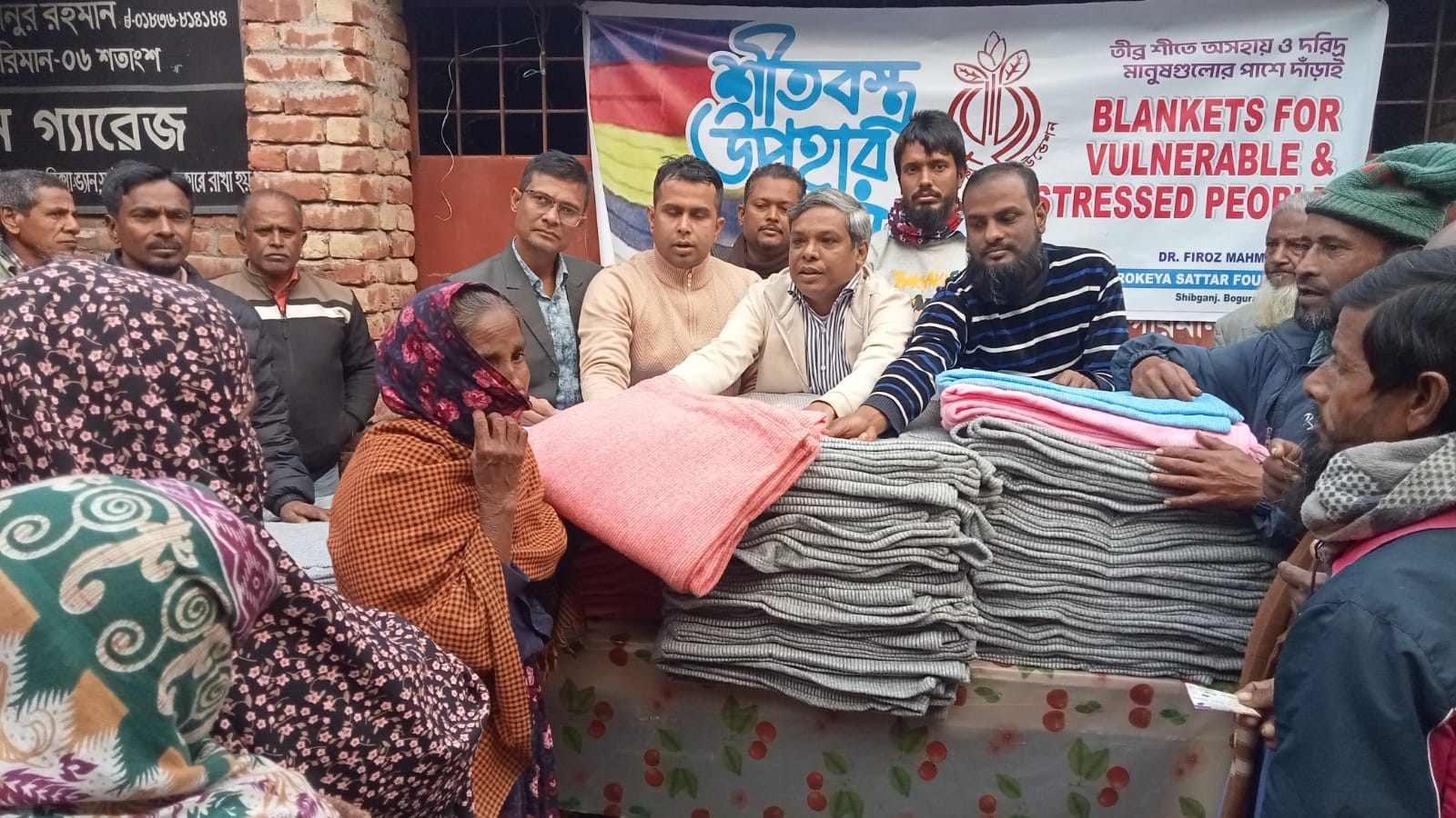 বগুড়ার শিবগঞ্জে মানবিক সংগঠন রোকেয়া-ছাত্তার ফাউন্ডেশন-এর উদ্যোগে উপজেলার মাঝিহট্র, কিচক এবং পৌরসভার গরিব ও অসহায় ৫ শতাধিক শীতার্ত মানুষের মাঝে শীতবস্ত্র (কম্বল) বিতরণ করা হয়েছে। শুক্রবার ( ৯ জানুয়ারি) প্রধান অতিথি হিসাবে উপস্থিত এই কম্বল বিতরণ করেন শিবগঞ্জ উপজেলা বিএনপির সহ-সভাপতি ডাঃ আশিক মাহমুদ ইকবাল (স্বাধীন)। এসময় উপস্থিত ছিলেন এ্যাডভোকেট রহুল আমিন বাবু, শিবগঞ্জ উপজেলা যুবদলের সাবেক যুগ্ম আহ্বায়ক হাবিবুল্লাহ মেজবাহ সৈকত,সাবেক সহ-সাংগঠনিক সম্পাদক হাদিউল ইসলাম জিকো,সাবেক যুগ্ম আহ্বায়ক যুবদল ও ছাত্রদল জাকারিয়া বিপ্লব, সাবেক ছাত্রদল নেতা সরকার নুর নবী তালুকদার,বিএনপি নেতা মাহমুদ হাসান, আব্দুল কাদের, মহিদুল ইসলাম পিন্টু, আনছার আলী,আবু জাফর চৌধুরী, ছালামত আলী প্রমূখ।