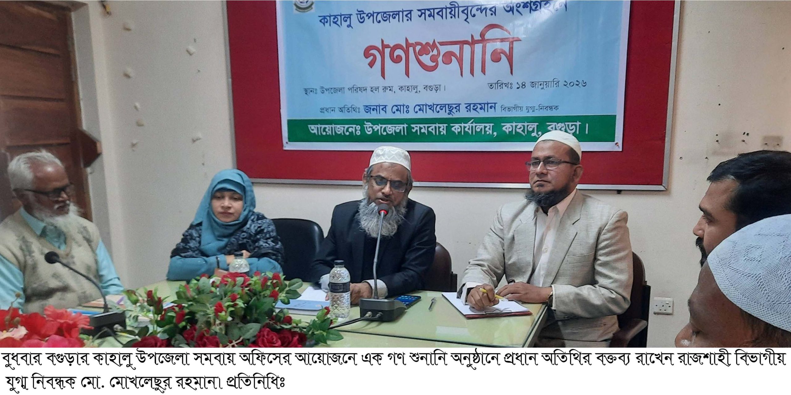 উক্ত গণ শুনানি অনুষ্ঠানে প্রধান অতিথি হিসেবে বক্তব্য রাখেন রাজশাহী বিভাগীয় সমবায় অফিসের যুগ্ম নিবন্ধক মো. মোখলেছুর রহমান। বিশেষ অতিথি হিসেবে বক্তব্য রাখেন কাহালু উপজেলা নির্বাহি অফিসার কাশপিয়া তাসরিন। অন্যান্যদের মধ্যে বক্তব্য রাখেন বগুড়া জেলা সমবায় অফিসের উপ-সহকারি নিবন্ধন মোছা. সাবিহা আফরুজ, কাহালু উপজেলা সমবায় অফিসার মো. মাহবুবর রহমান প্রমুখ। উক্ত গণ শুনানি অনুষ্ঠানে কাহালু উপজেলার ৭০ জন সমবায়ী অংশগ্রহণ করেন।