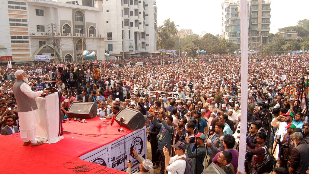 শনিবার দুপুরে জামায়াতে ইসলামী বগুড়া জেলা ও শহর শাখার আয়োজনে ঐতিহাসিক আলতাফুন্নেছা খেলার মাঠের বিশাল নির্বাচনী জনসভায় প্রধান অতিথির বক্তব্যে তিনি বগুড়ার উন্নয়ন পরিকল্পনা তুলে ধরেন। আমিরে জামায়াত বলেন, জুলাই আন্দোলনে জীবনদানকারী বীর শহীদদের আকাংখা ছিল একটি সুখী, সমৃদ্ধশালী, দূর্নীতি, দু:শাসন ও চাঁদাবাজমুক্ত বাংলাদেশ। জনগণ জামায়াতে ইসলামীকে সরকার গঠনের সুযোগ দিলে শহীদদের আকাংখা বাস্তবায়নে চাঁদাবাজমুক্ত বাংলাদেশ গড়ে তোলা হবে। তিনি বলেন, আমরা বিভক্ত চাই না। সবাইকে নিয়ে ঐক্যবদ্ধ বাংলাদেশ গড়তে চাই। যারা অতীতে জাতিকে ১০ টাকা কেজি চাউল খাওয়ানোর লোভ দেখিয়ে ধোকা দিয়েছিল তাদের পরিনতি সবাই দেখেছে। এখনো যারা নানাভাবে জনগণকে ধোকা দিতে চান তাদেরকে জনগণ প্রত্যাখ্যান করবে। জামায়াতে ইসলামী সরকার পরিচালনার সুযোগ পেলে অততের মত আর কেউ সরকারি কোষাগার থেকে চুরি করতে পারবেনা। যারা জনগণের টাকা চুরি করে বিদেশে পাচার করেছে তাদের পেট পেটে হাত ঢুকিয়ে সেই টাকা বের করে আনা হবে। দেশে কোন বৈষম্য থাকবেনা। সমাজের সর্বস্তরে ন্যায় এবং ইনসাফ প্রতিষ্ঠা করা হবে।তিনি বলেন, জামায়াতের লোকেরা অতীতে কখনো চাঁদাবাজী করেনি, বর্তমানে করেনা এবং ভবিষ্যতেও করবেনা। আমাদের পরিস্কার ঘোষণা হলো আমরা চাঁদাবাজি করবোনা, কাউকে করতেও দিবোনা। আমিরে জামায়াত বলেন, নারীরা আমাদের মায়ের জাত। তাদের সর্বোচ্চ সম্মান নিশ্চিত করা হবে। পুরুষদের পাশাপাশি আমাদের মায়েরা যোগ্যতার সাথে দেশ গড়ার কাজে অংশগ্রহন করবেন। তারা নিশ্চিন্তে নিজের ইজ্জত নিয়ে চলাফেরা করবেন। রাসুল (সা:) এর জামানায় নারীরা যেমন নিরাপদে ছিলেন জামায়তে ইসলামী ক্ষমতায় এলে তেমনিভাবে মায়েদের নিরাপত্তা ও সম্মান নিশ্চিত করা হবে। মায়েদের মেধাকে দেশের উন্নয়নে কাজে লাগিয়ে তাদেরকে সম্মানিত করা হবে। কেউ মায়েদের ইজ্জত এবং সম্মান নিয়ে ছিনিমিনি খেলার চেষ্টা করলে বরদাশত করা হবেনা। যুবকদের উদ্দেশ্যে আমিরে জামায়াত বলেন, আমরা দেশের যুবকদের বেকার অবস্থায় দেখতে চাই না। আমরা বেকারদের ভাতা দিয়ে অসম্মানিত করতে চাই না। আমরা যুবকদের হাতকে কারিগরের হাতে পরিনত করতে চাই। সকল যুবক-যুবতীর হাতে কাজ তুলে দিতে চাই। তিনি ন্যায়, ইনসাফের মানবিক বাংলাদেশ গড়তে সর্বস্তরের মানুষকে দাঁড়িপাল্লায় ভোট দিয়ে বিজয়ী করার আহ্বান জানান। পরে তিনি বগুড়া জেলার ৭টি আসনে জামায়াত মনোনীত প্রার্থীদের হাতে দাঁড়িপাল্লা প্রতিক তুলে দিয়ে সবার সাথে পরিচয় করিয়ে দেন।