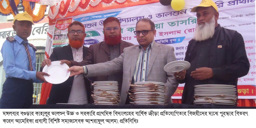 বগুড়া সংবাদ : মঙ্গলবার বগুড়ার কাহালুর ভালশুন উচ্চ ও সরকারি প্রাথমিক বিদ্যালয় মাঠে অত্র বিদ্যালয়ের বার্ষিক ক্রীড়া, সাংস্কৃতিক প্রতিযোগিতা ও পুরস্কার বিতরণ অনুষ্ঠান অনুষ্ঠিত হয়।