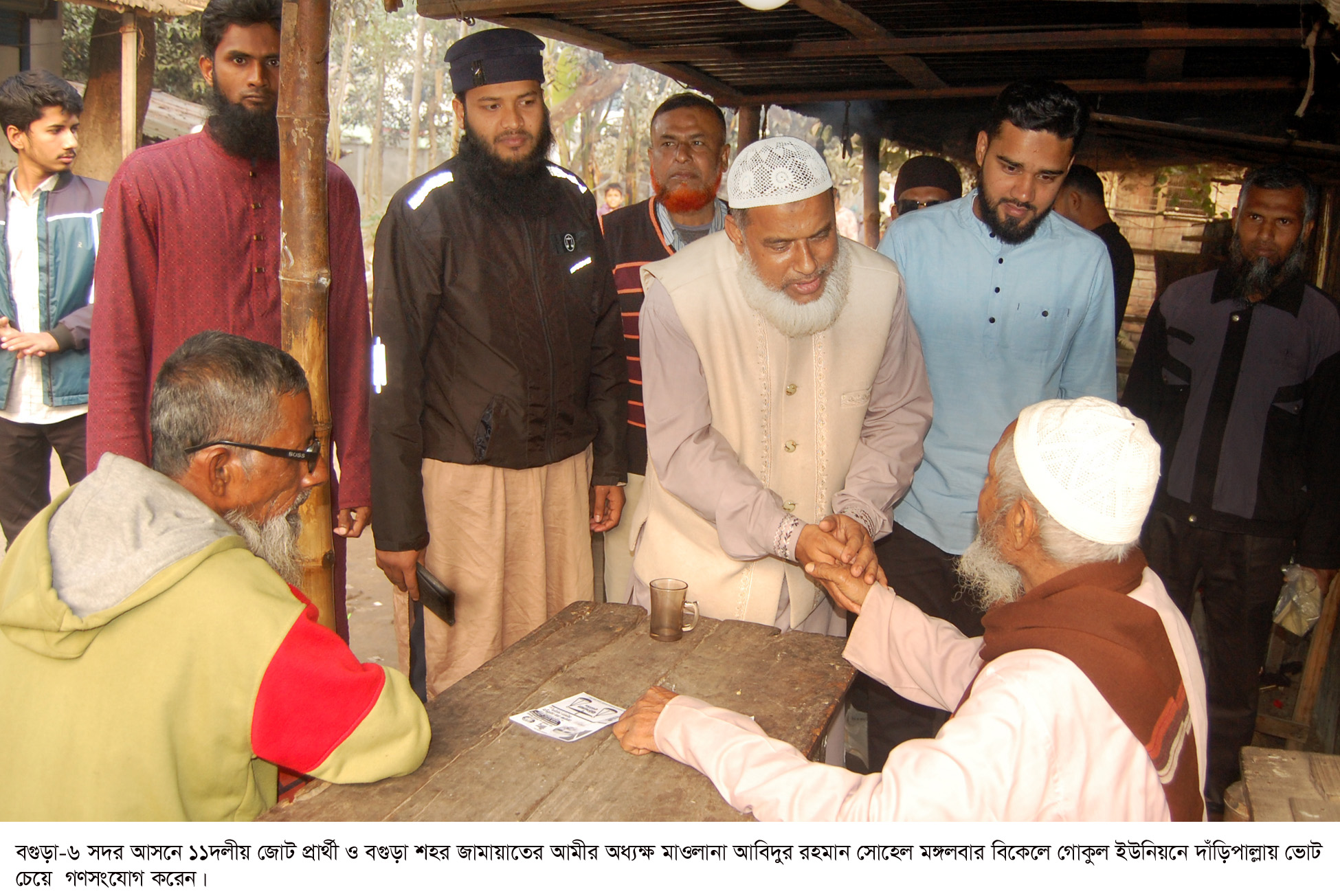 বগুড়ার গোকুলে দাঁড়িপাল্লায় ভোট চেয়ে জামায়াত প্রার্থীর গনসংযোগ